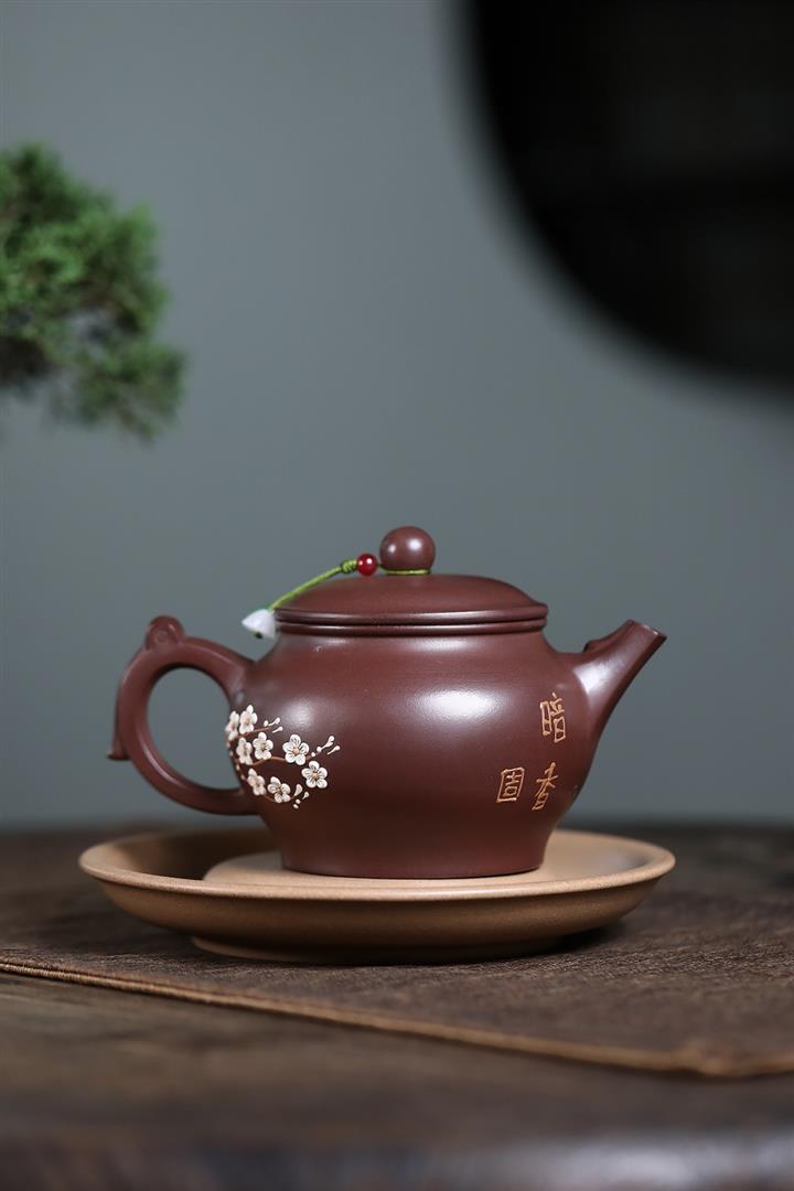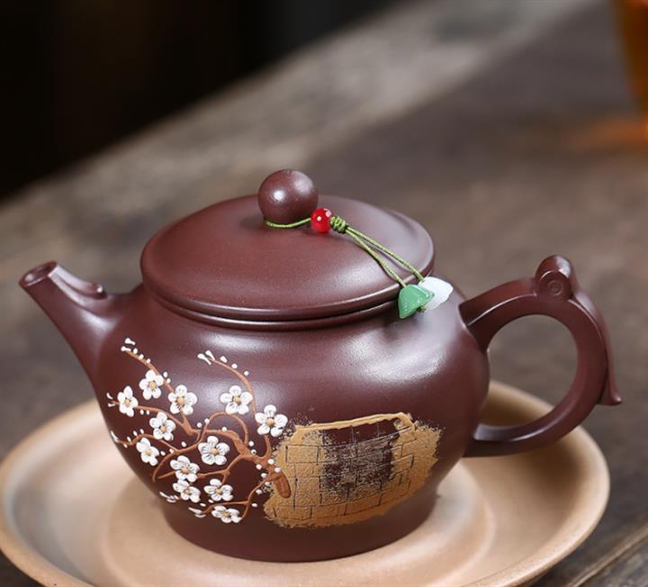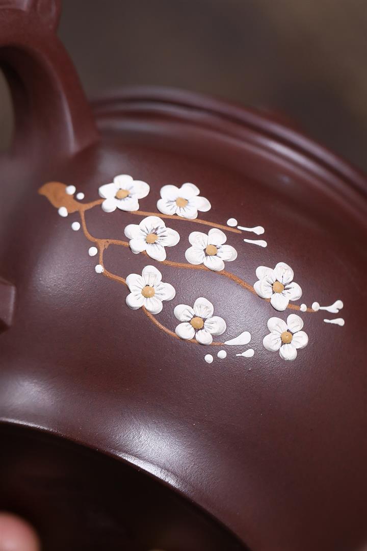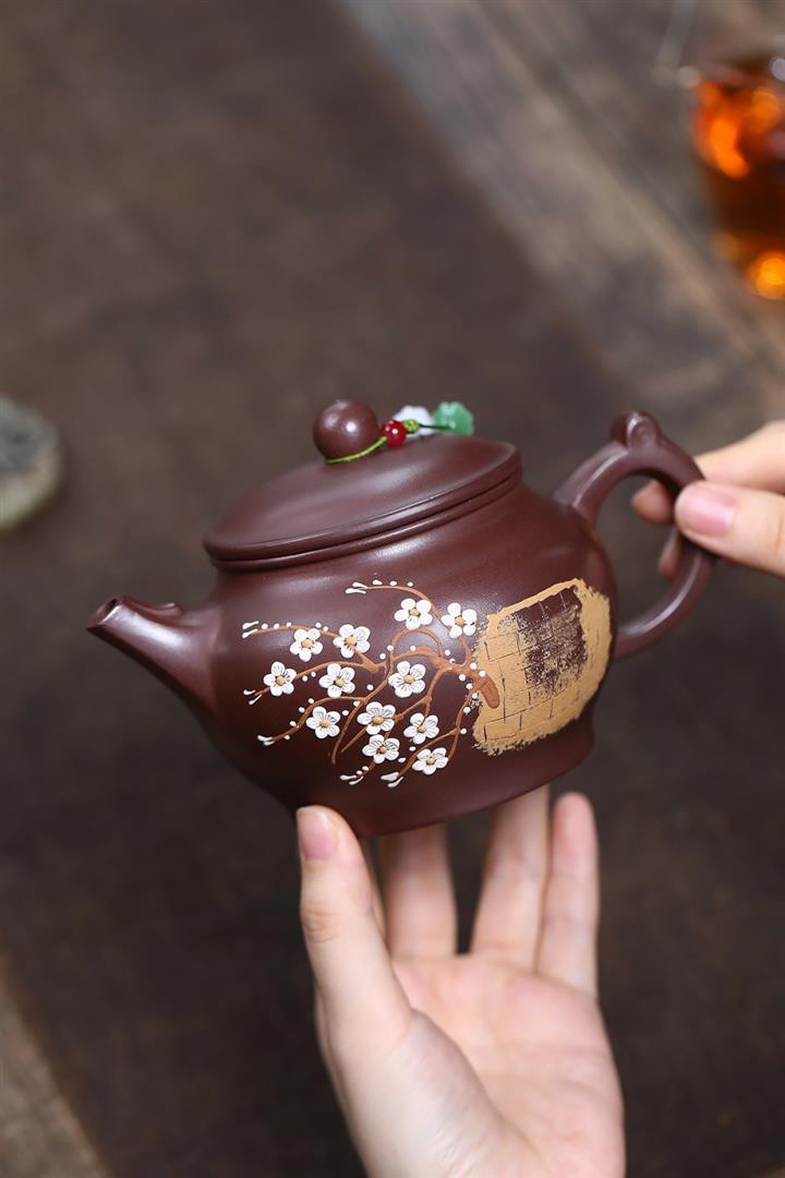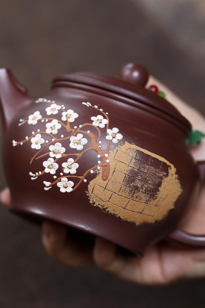 原礦紫泥泥繪暗香如意茶壺POT7531