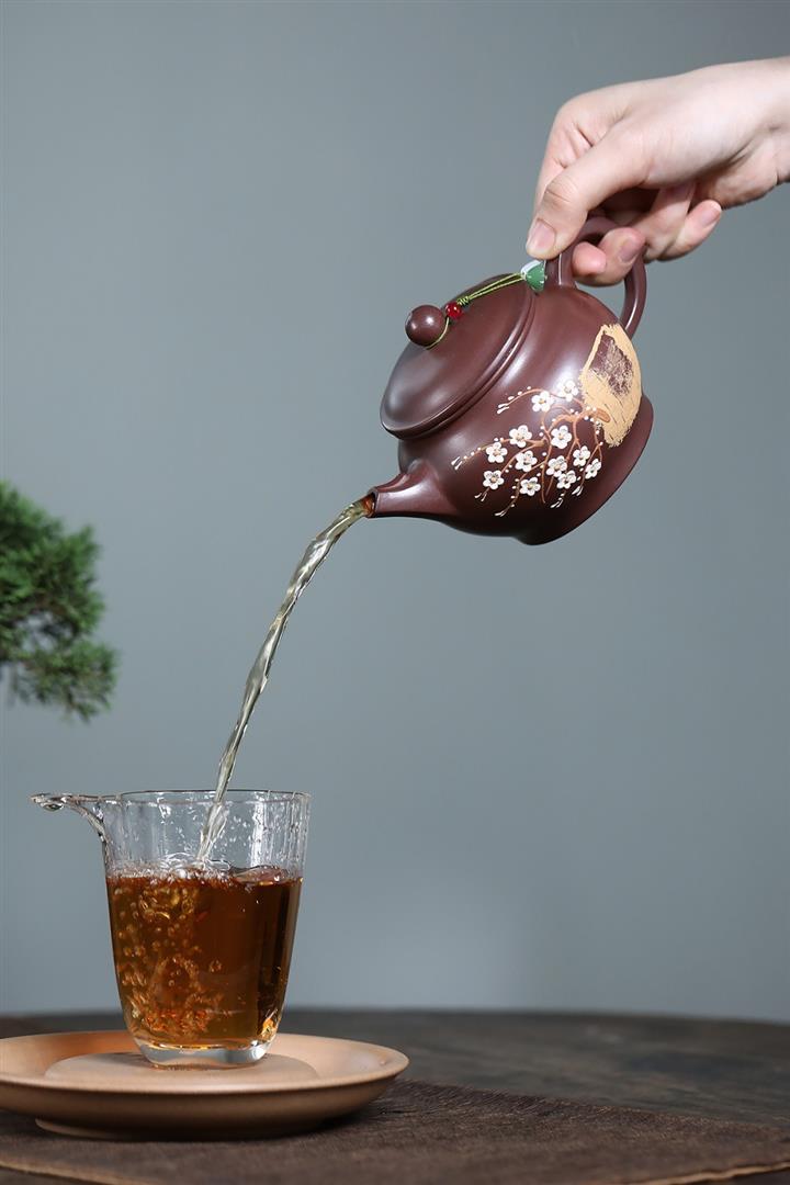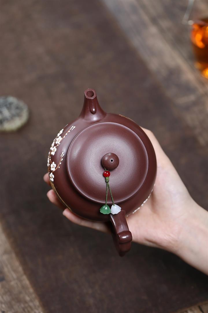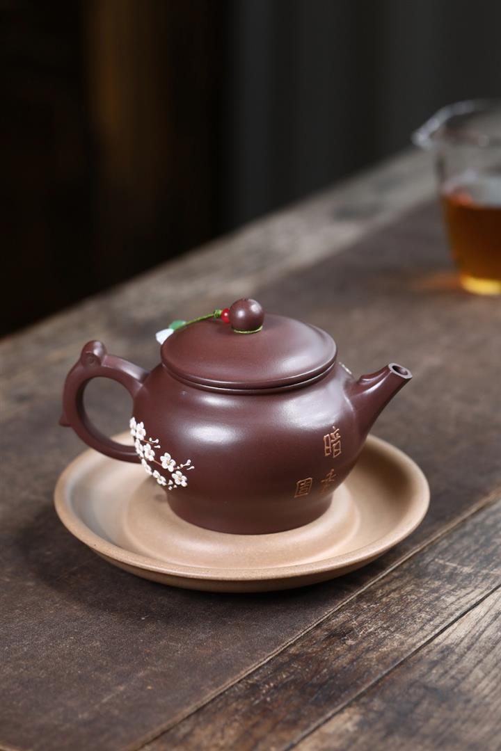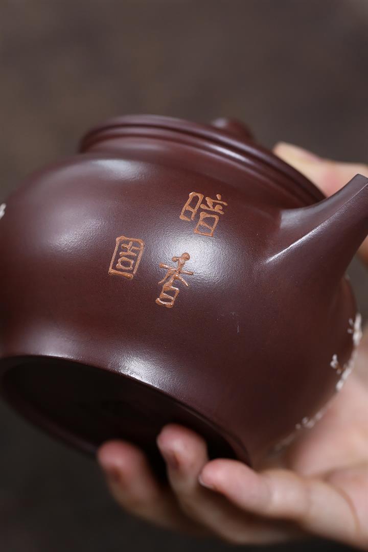 原礦紫泥泥繪暗香如意茶壺POT7531