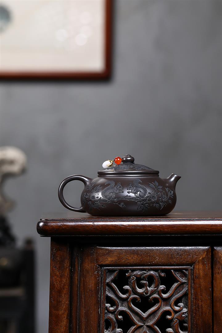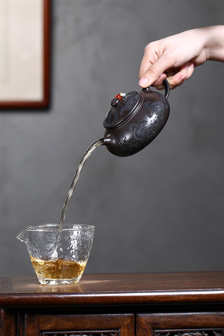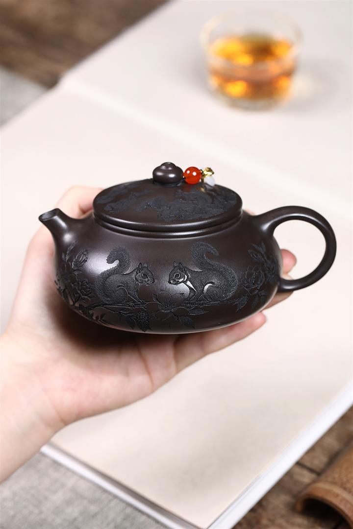 紫砂使用越久,壺身色澤越發光亮照人,氣韻溫雅。紫砂壺長久使用器身會因撫摸擦拭,變得越發溫潤光澤!