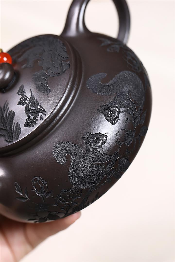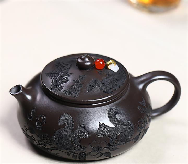 原礦玄鐵石黃松鼠寒江茶壺POT7541