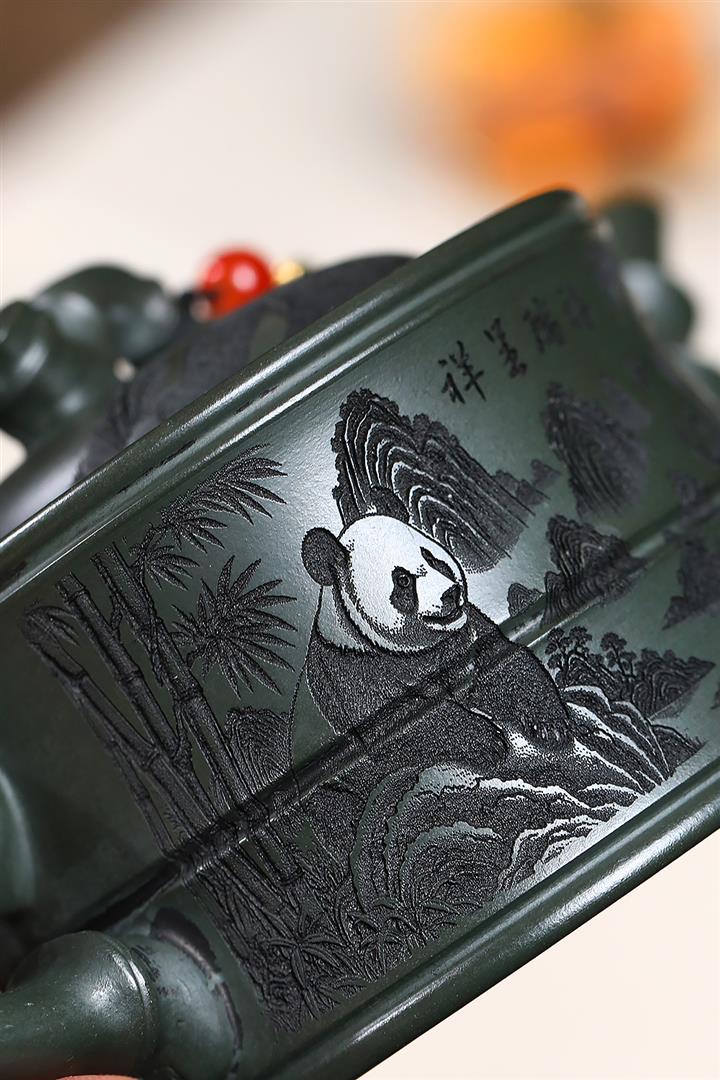 原礦墨綠泥熊貓壹品竹段茶壺POT7542