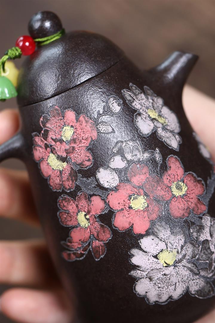 原礦玄鐵石黃喜上眉梢高龍蛋茶壺POT7549