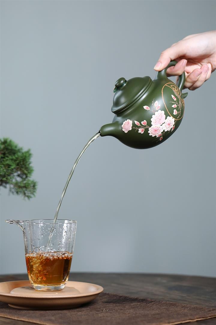 紫砂使用越久,壺身色澤越發光亮照人,氣韻溫雅。紫砂壺長久使用器身會因撫摸擦拭,變得越發溫潤光澤!