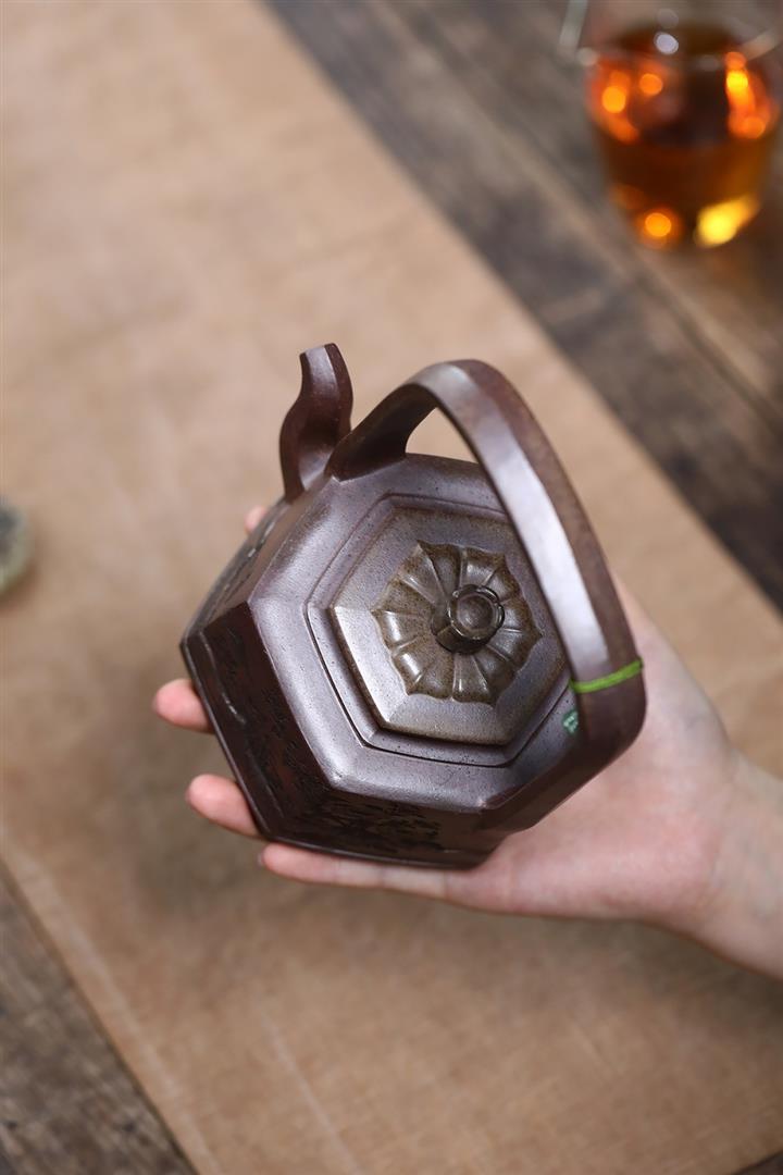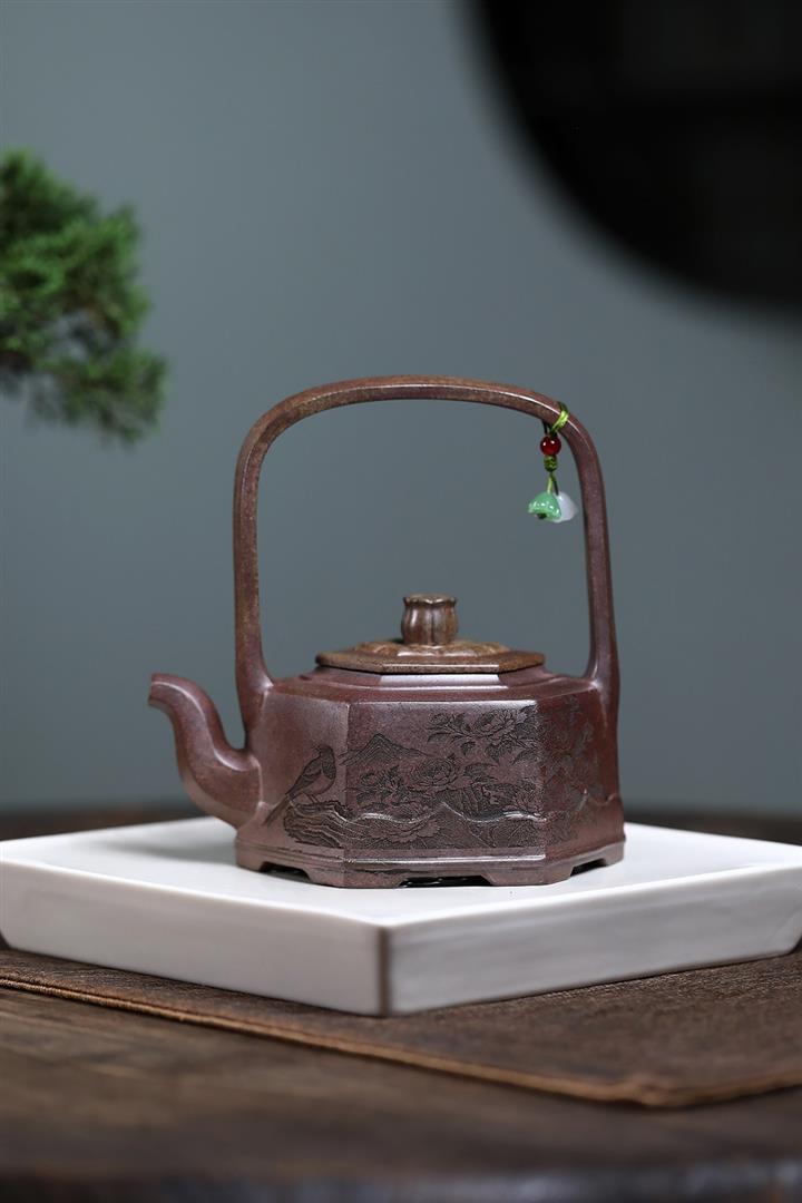 原礦赤龍血砂魚趣六方宮燈茶壺POT7555