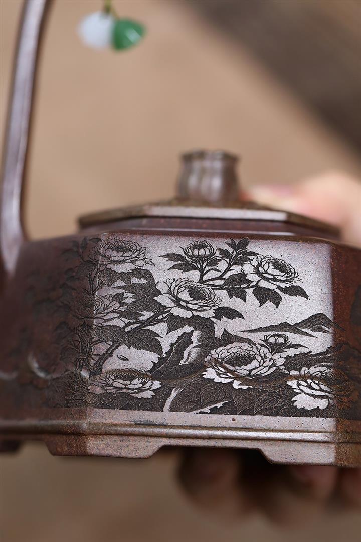 原礦鐵血紅砂六方宮燈茶壺POT7563