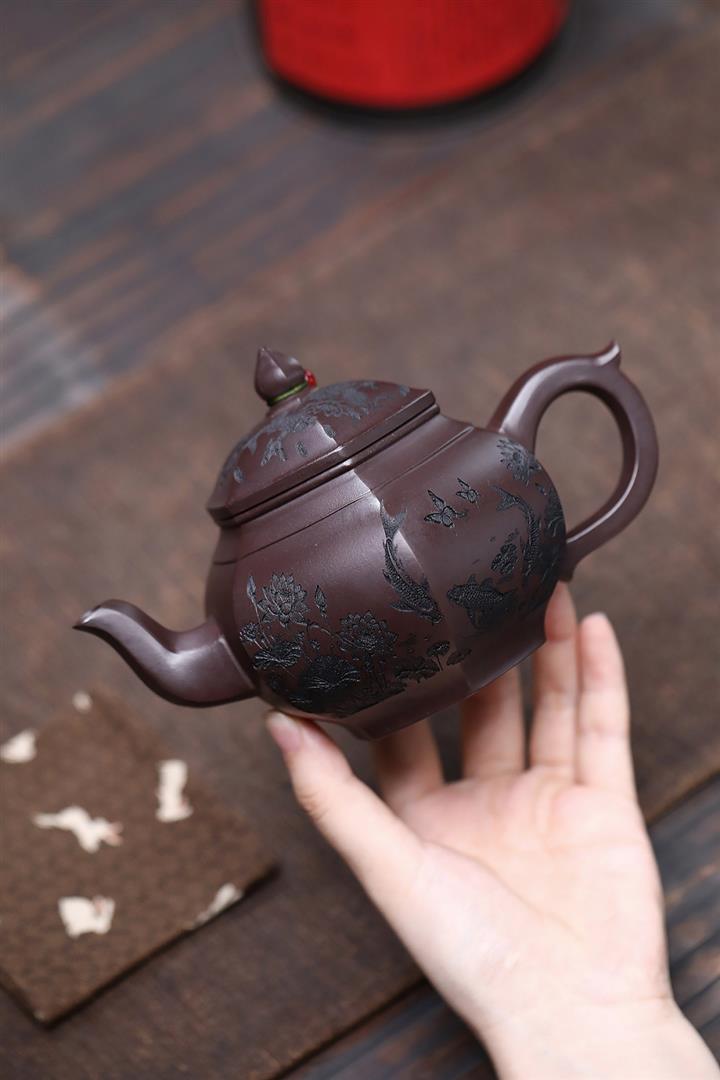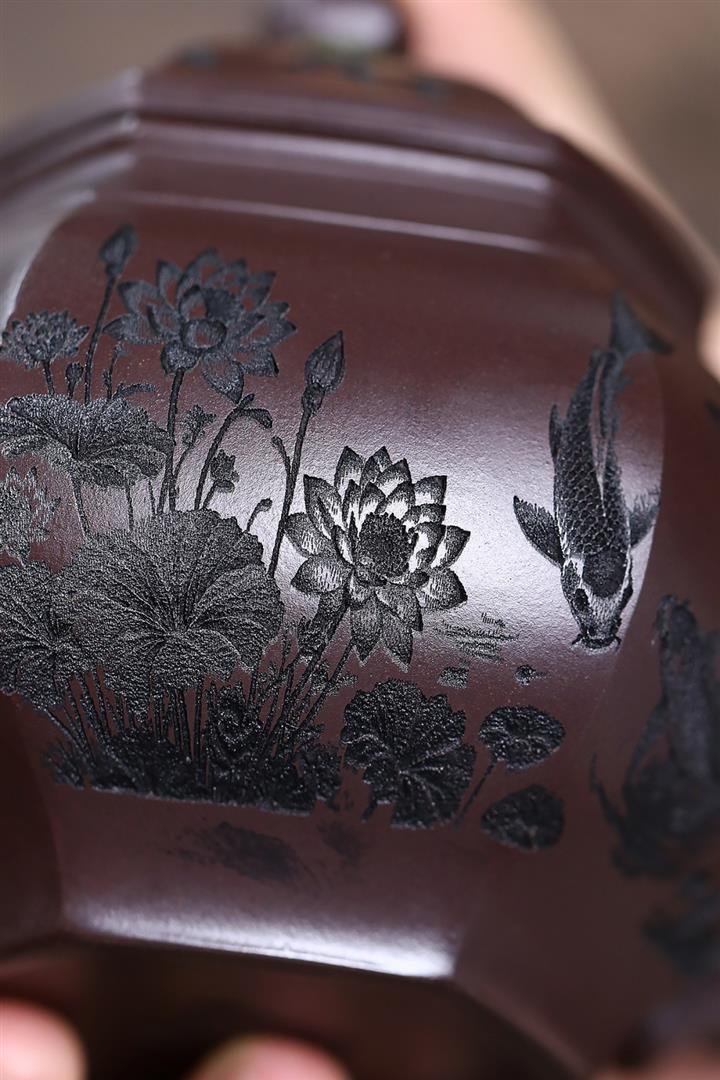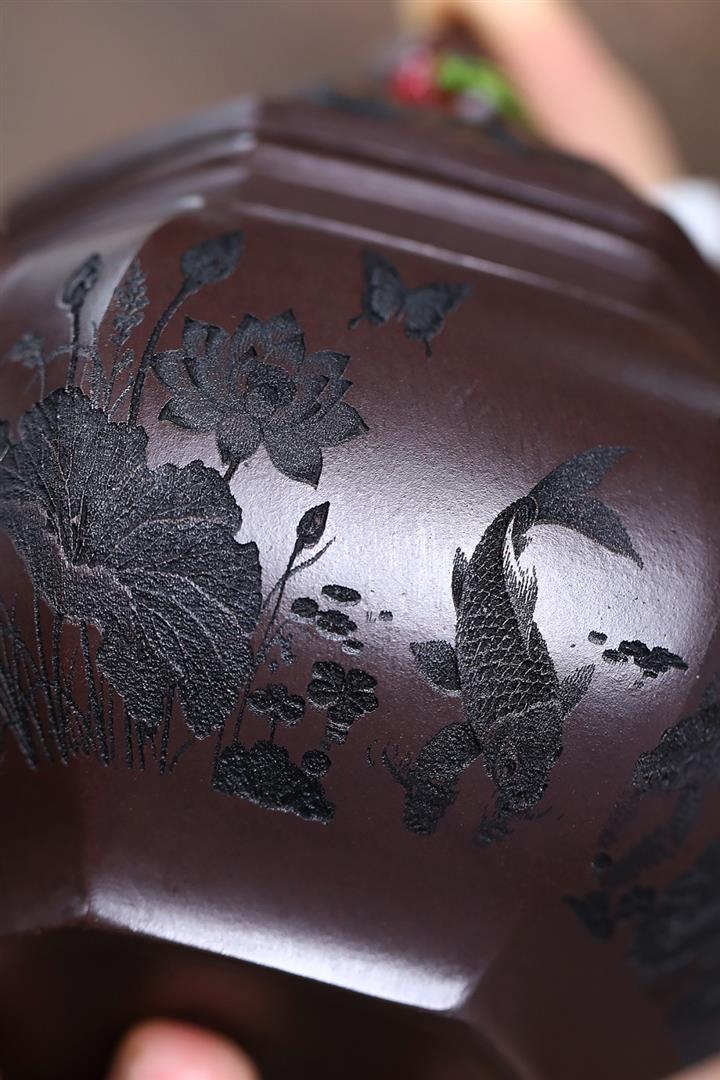 原礦赤龍血砂魚趣六方宮燈茶壺POT7555