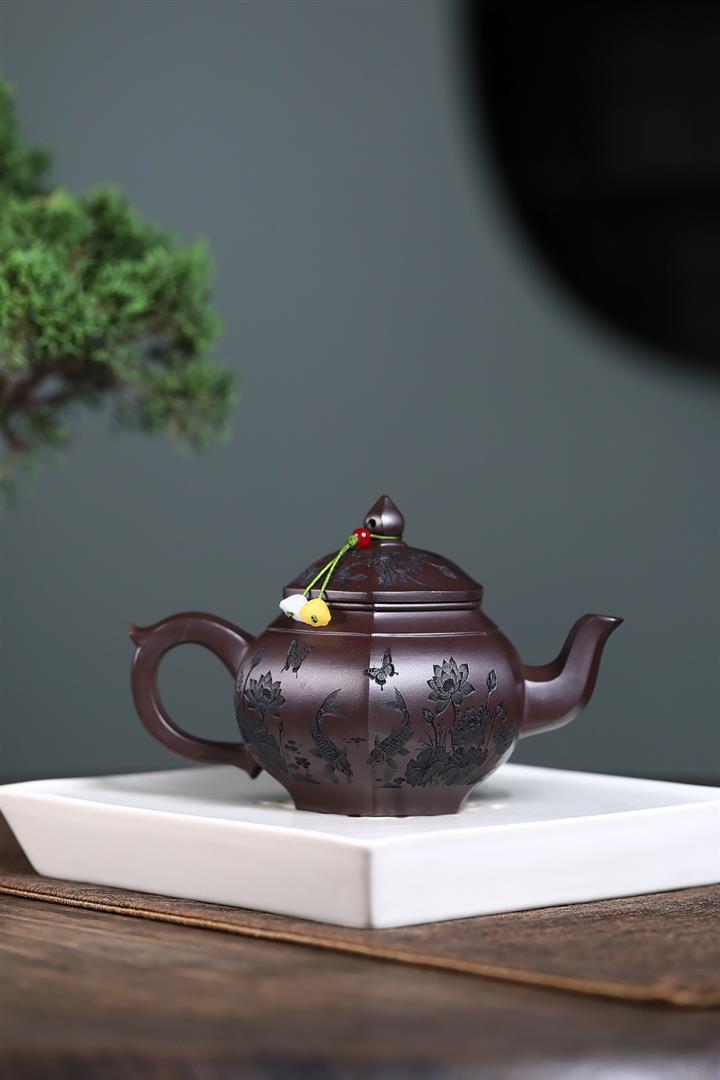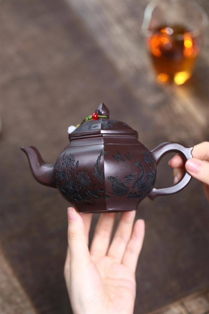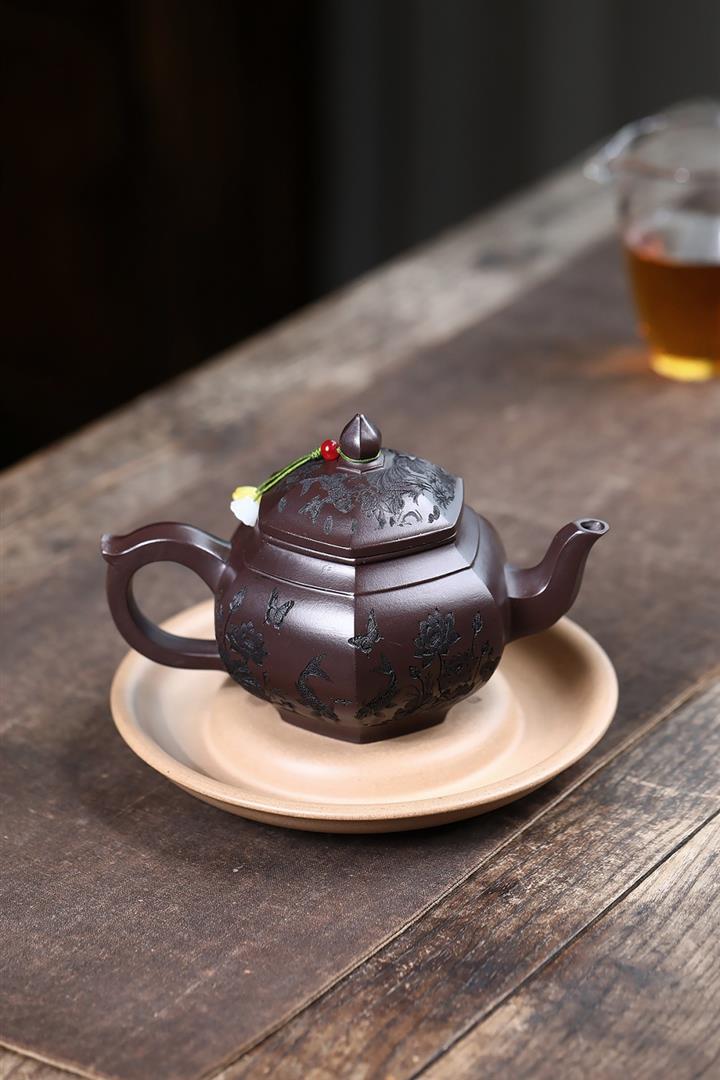紫砂使用越久,壺身色澤越發光亮照人,氣韻溫雅。紫砂壺長久使用器身會因撫摸擦拭,變得越發溫潤光澤!
