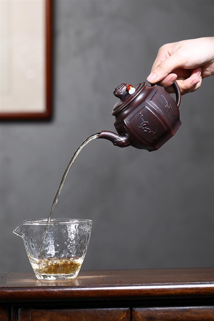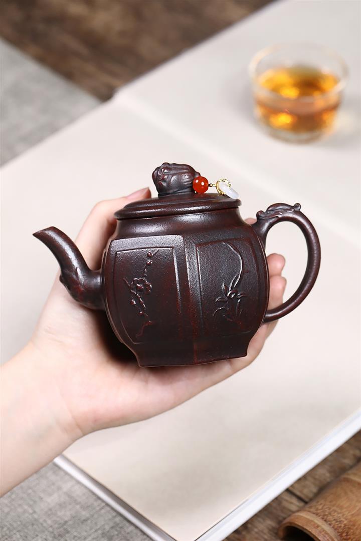 紫砂使用越久,壺身色澤越發光亮照人,氣韻溫雅。紫砂壺長久使用器身會因撫摸擦拭,變得越發溫潤光澤!
