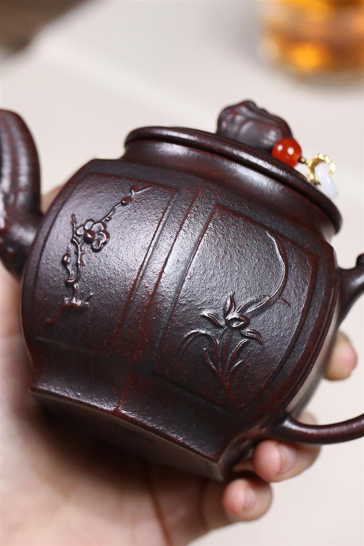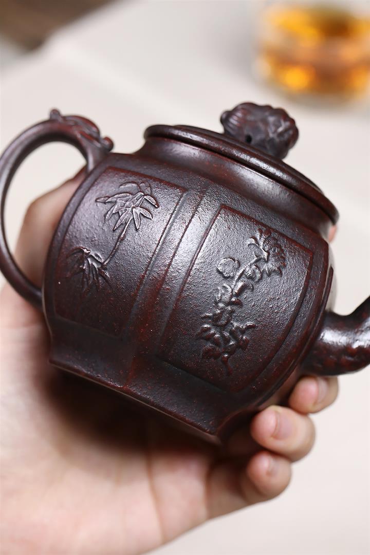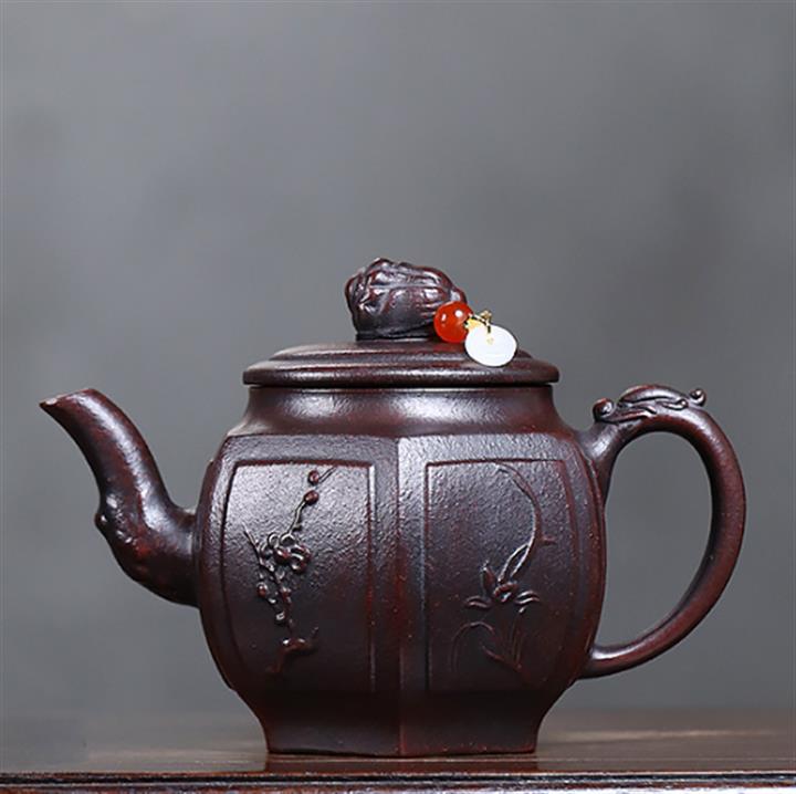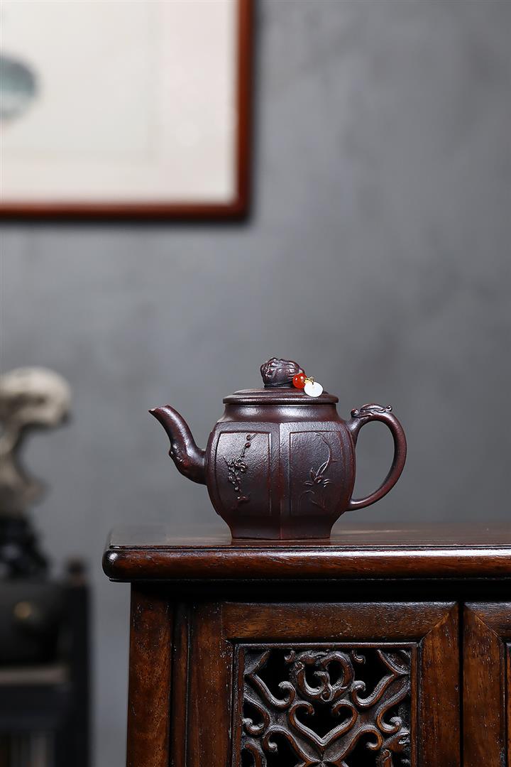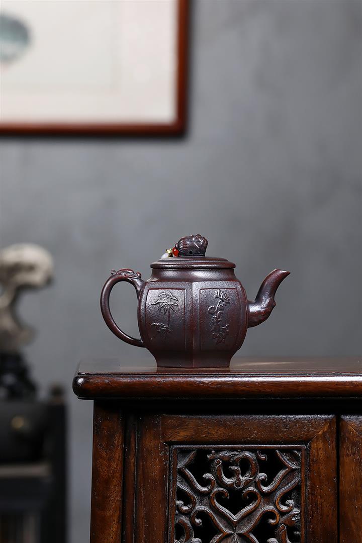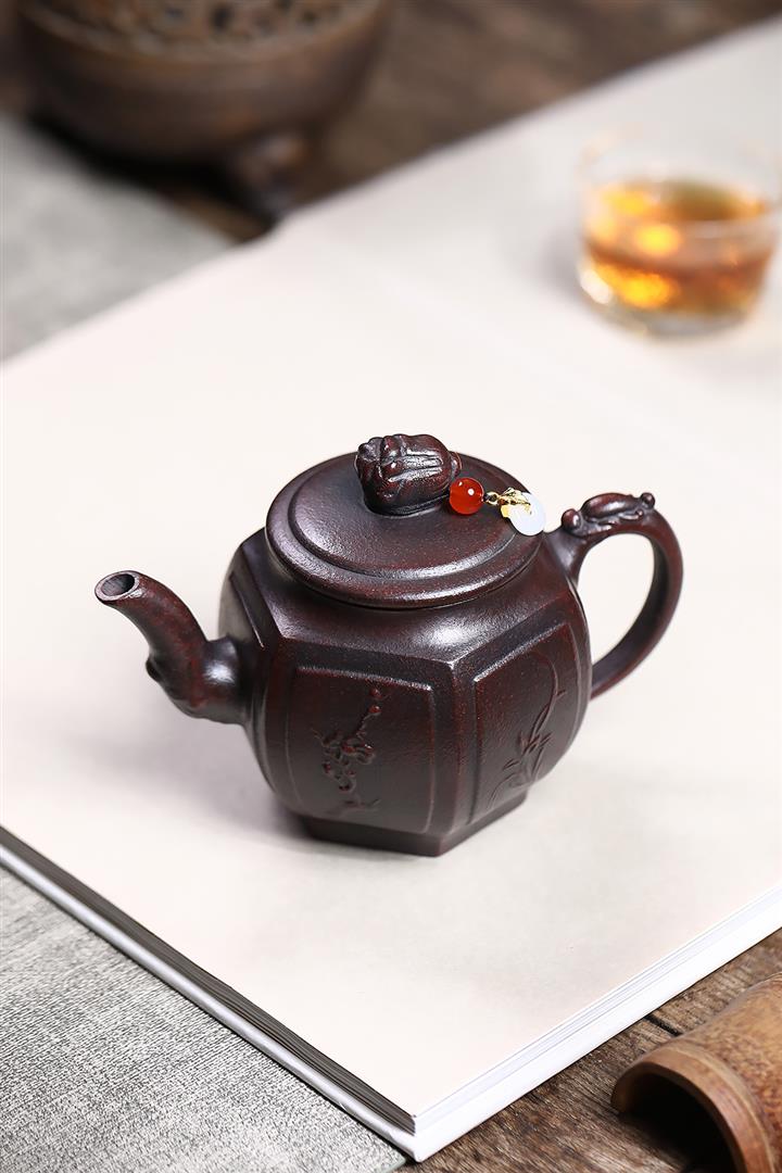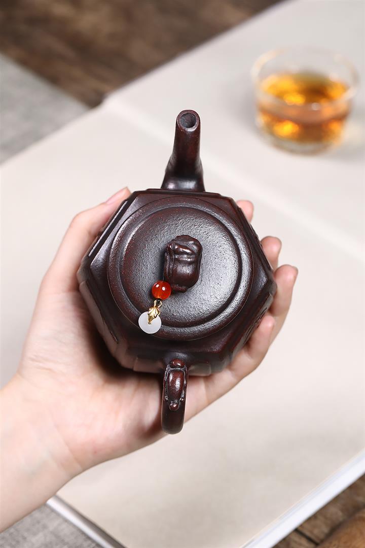 原礦鐵血紅砂六方宮燈茶壺POT7563