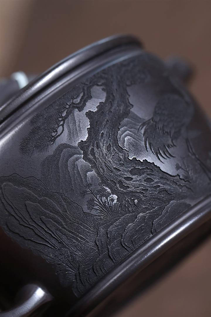 原礦綠泥刻繪花鳥竹鼎茶壺POT7569