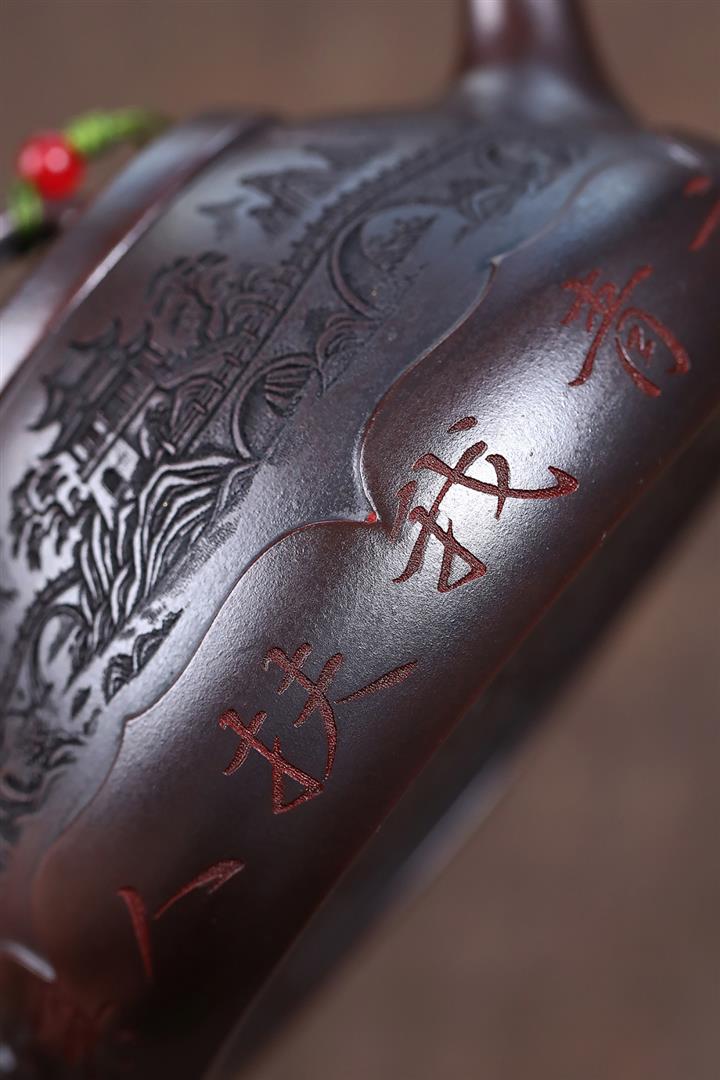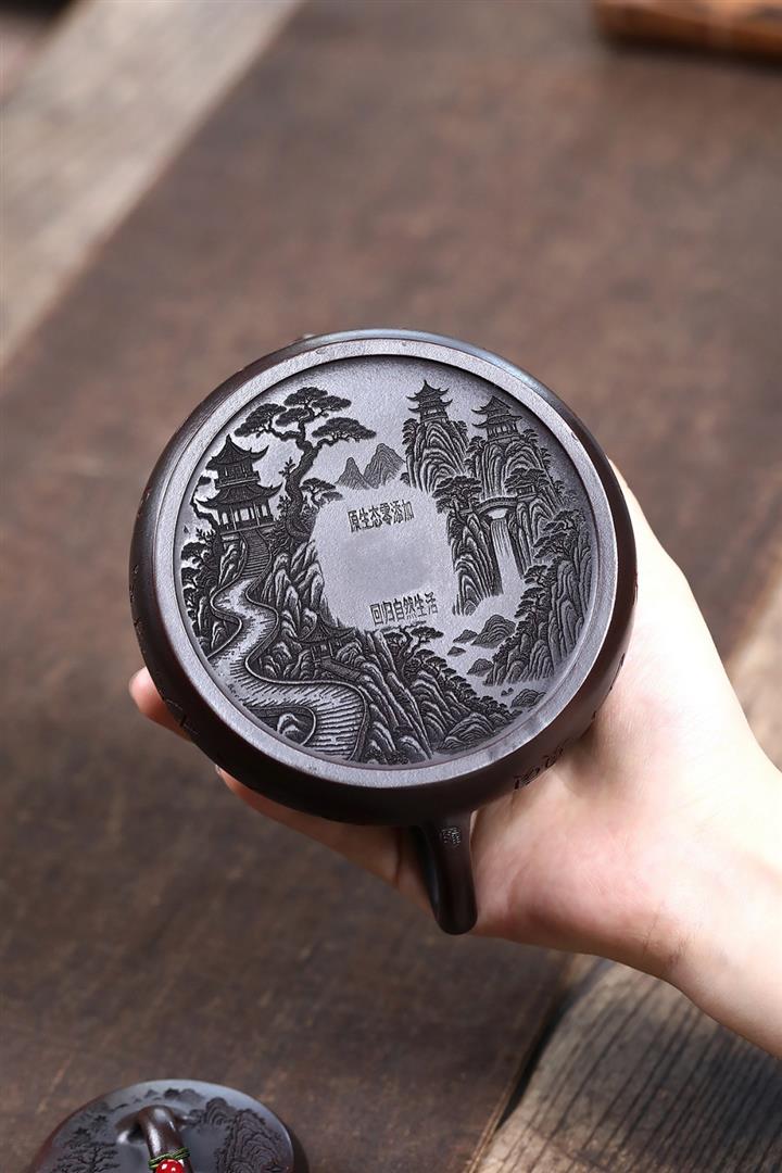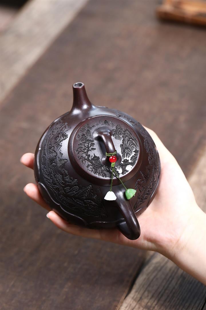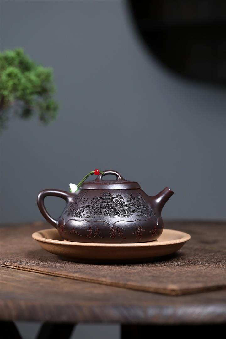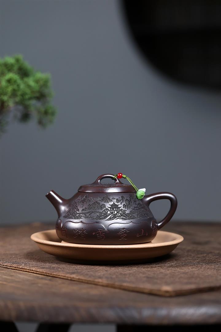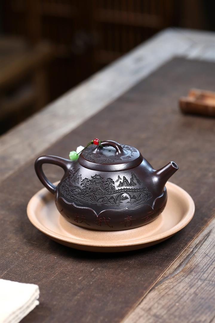 原礦墨綠泥如意山水漢瓦茶壺POT7577