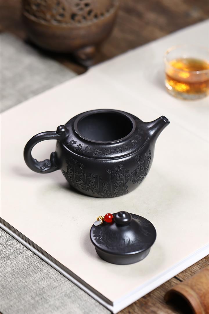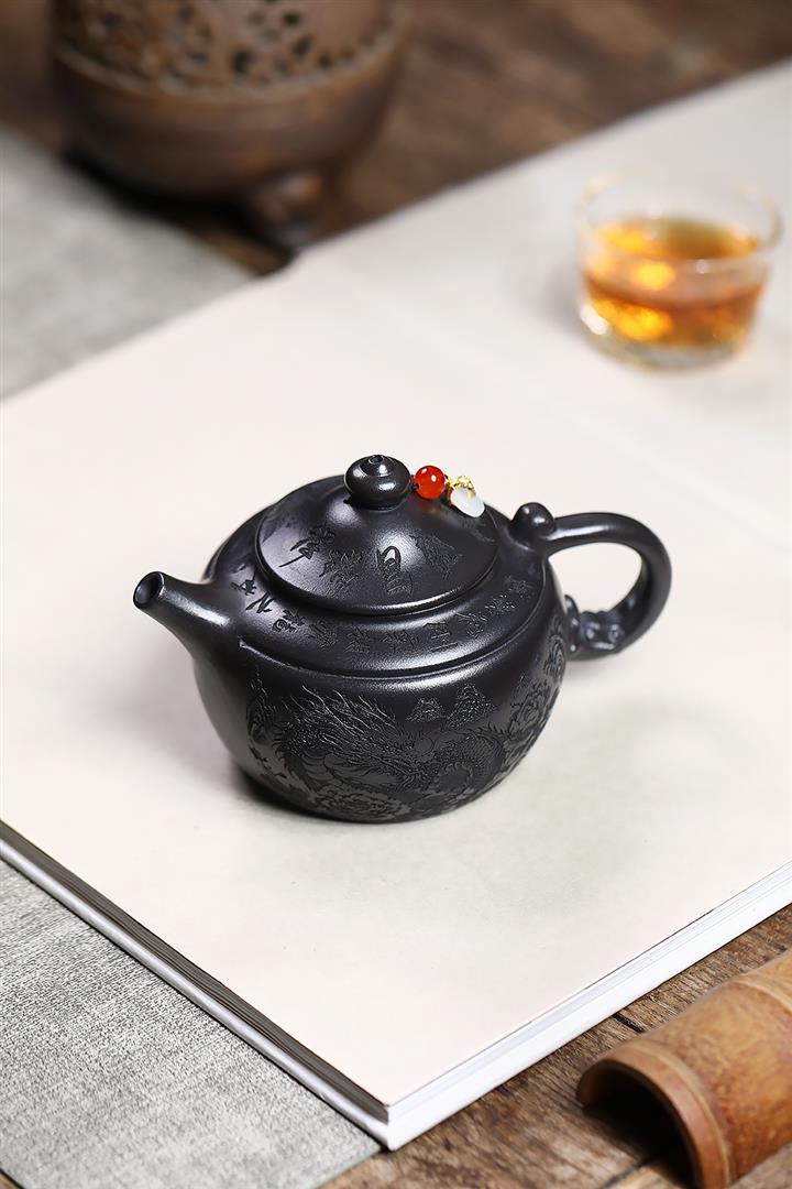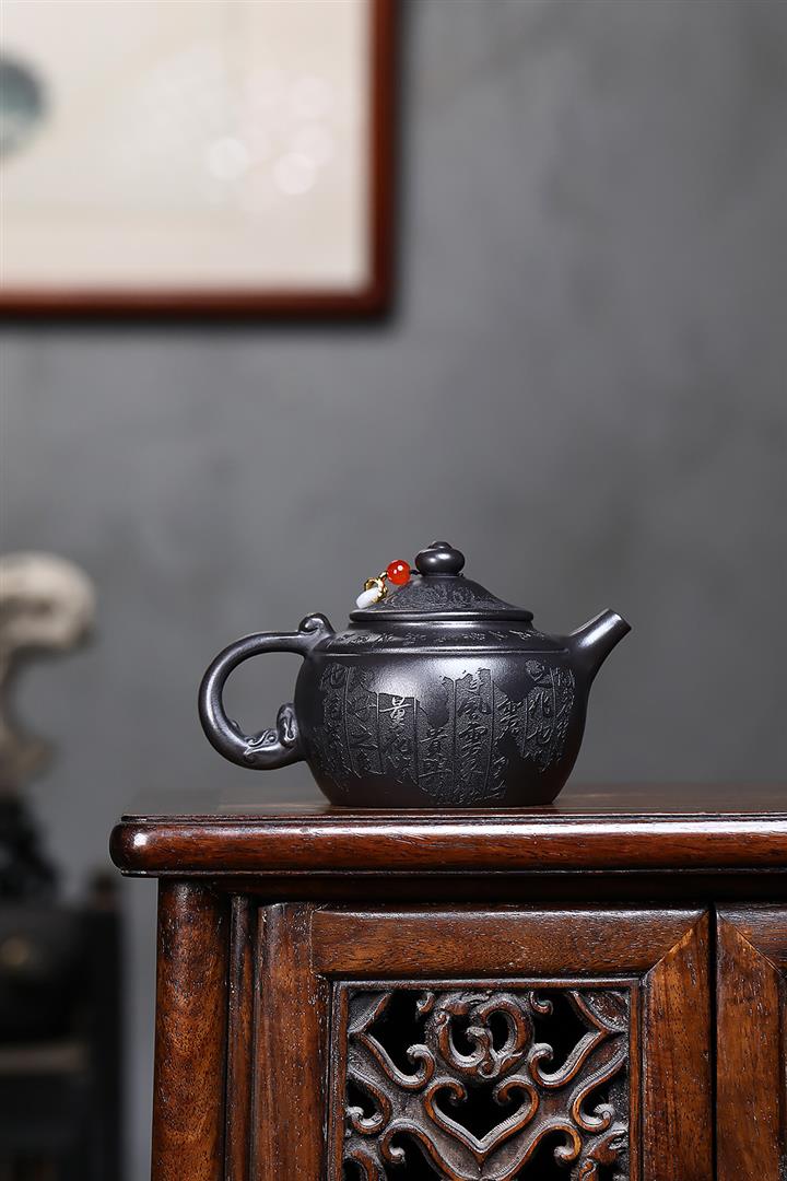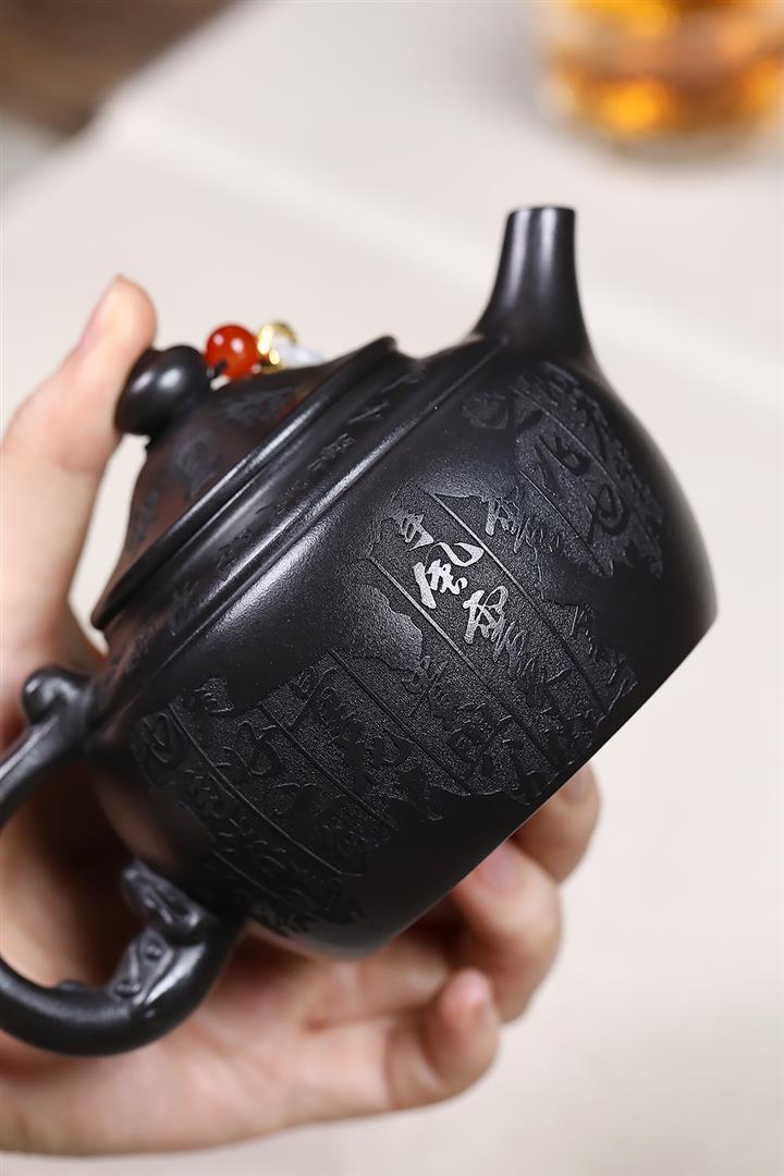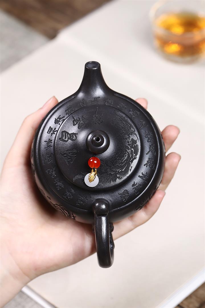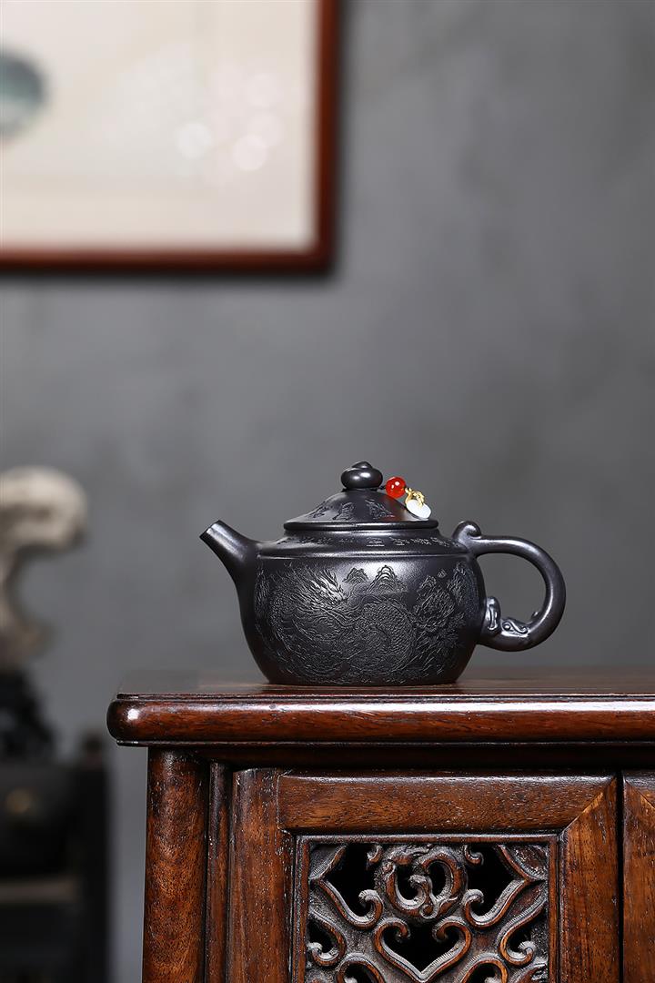 原礦墨綠泥如意山水漢瓦茶壺POT7577