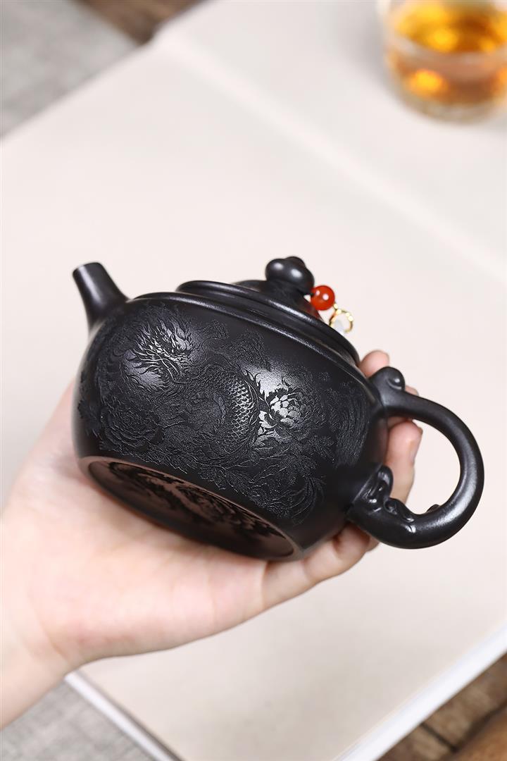 原礦玄鐵石黃龍龜德鐘茶壺POT7572