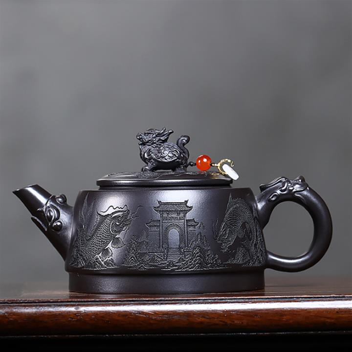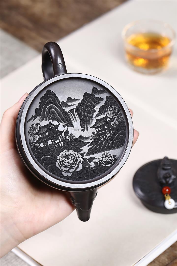 原礦墨綠泥如意山水漢瓦茶壺POT7577