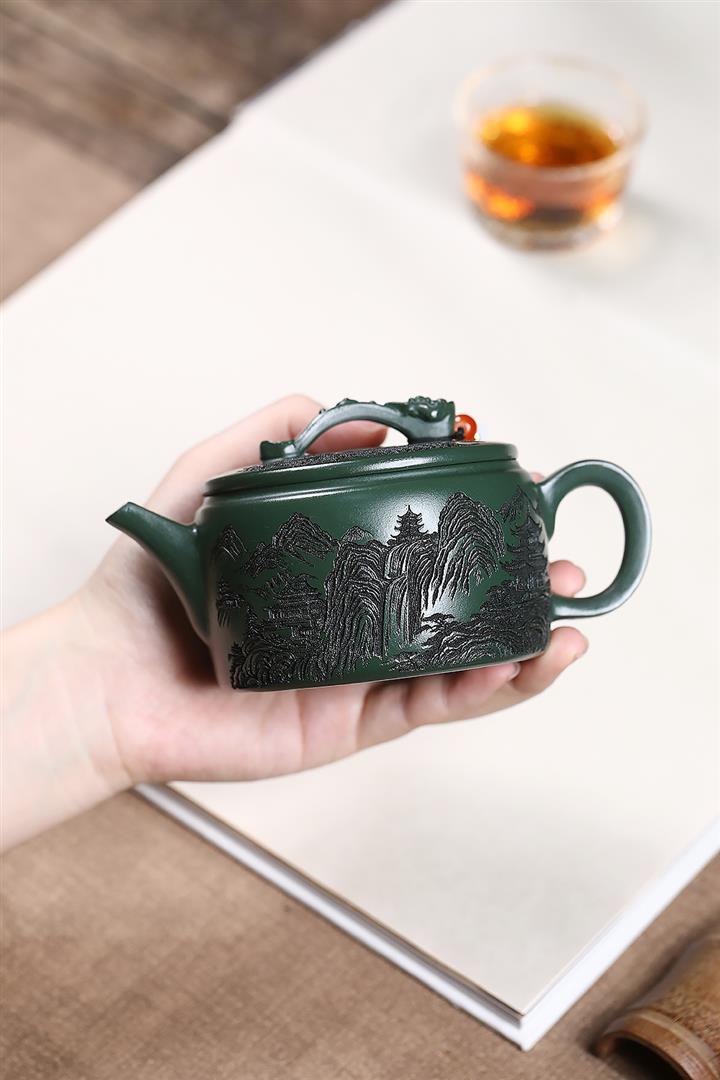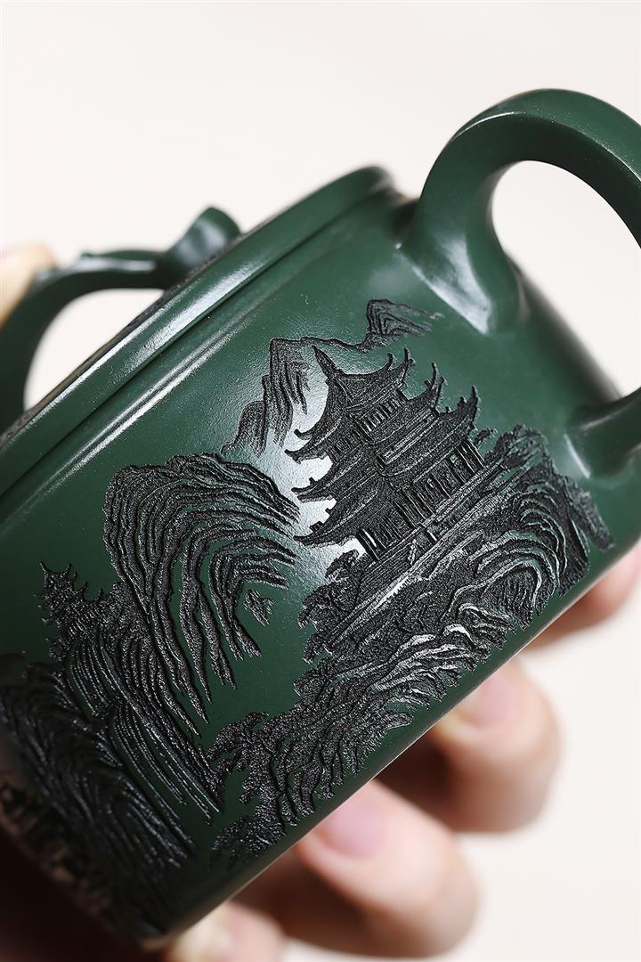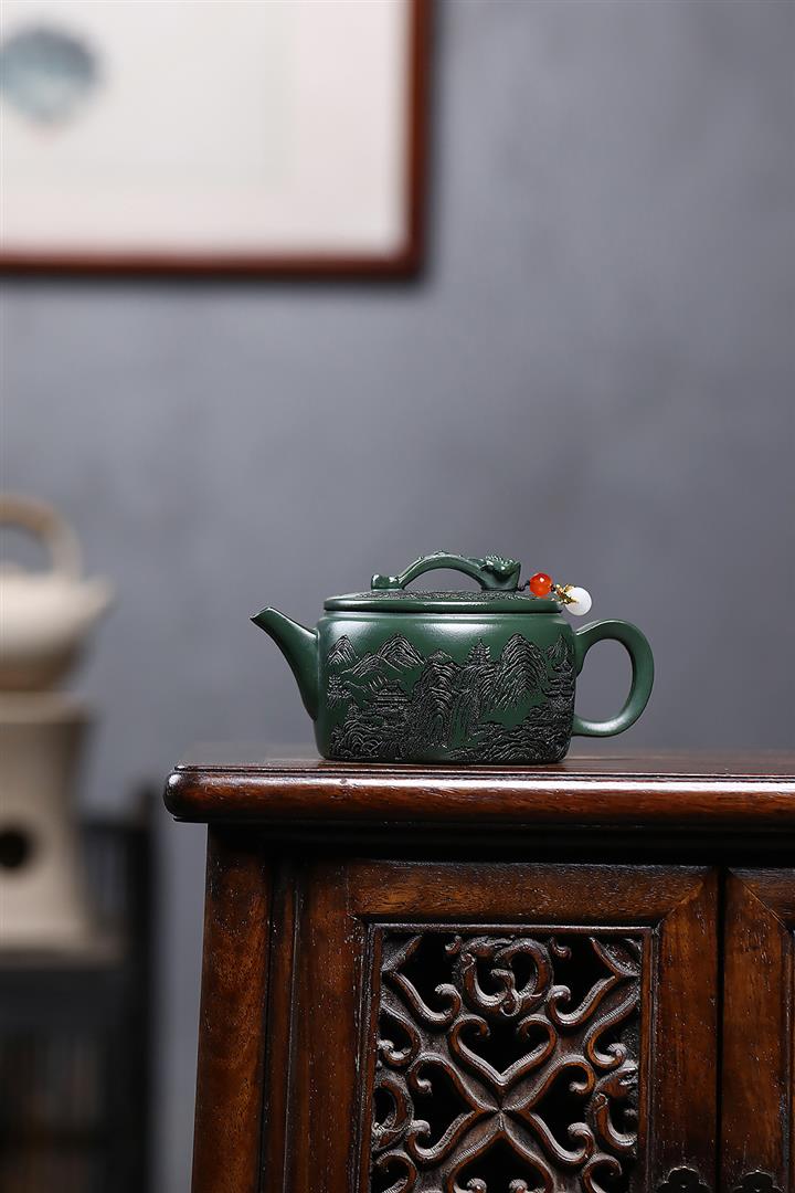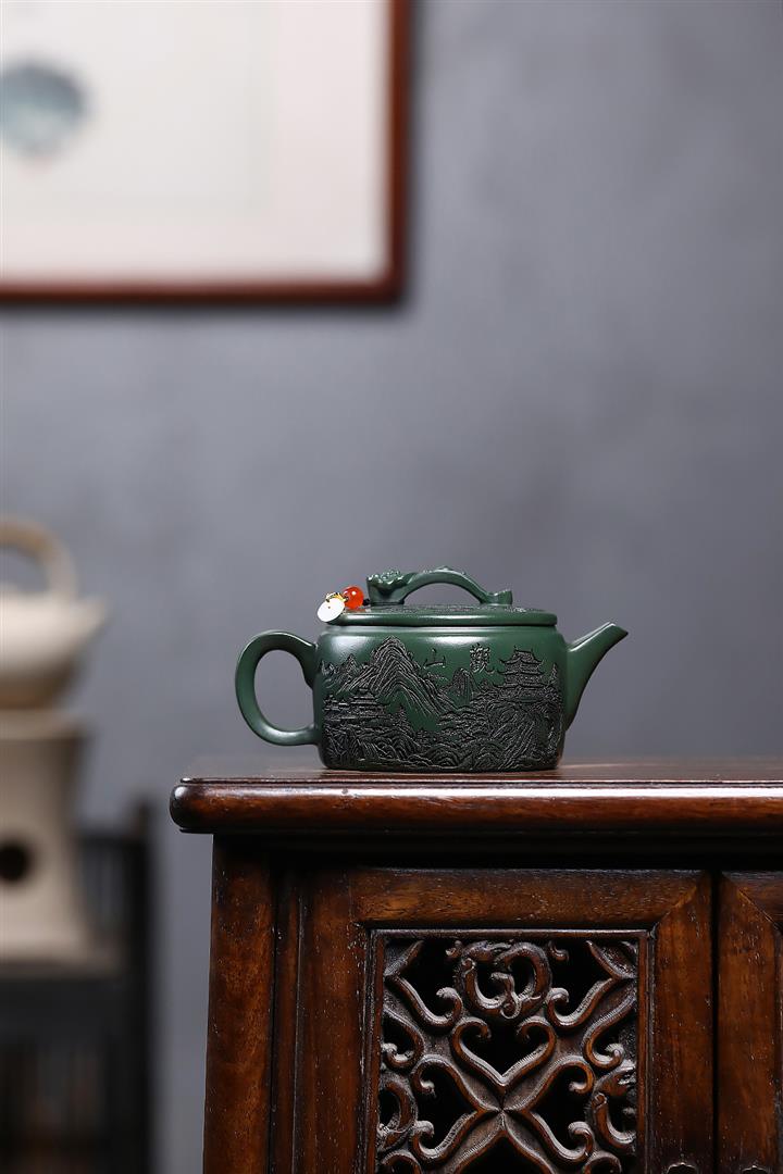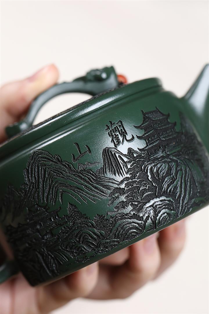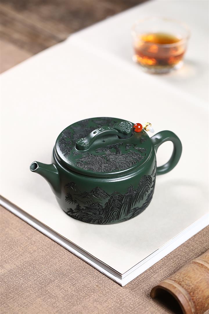 原礦墨綠泥如意山水漢瓦茶壺POT7577