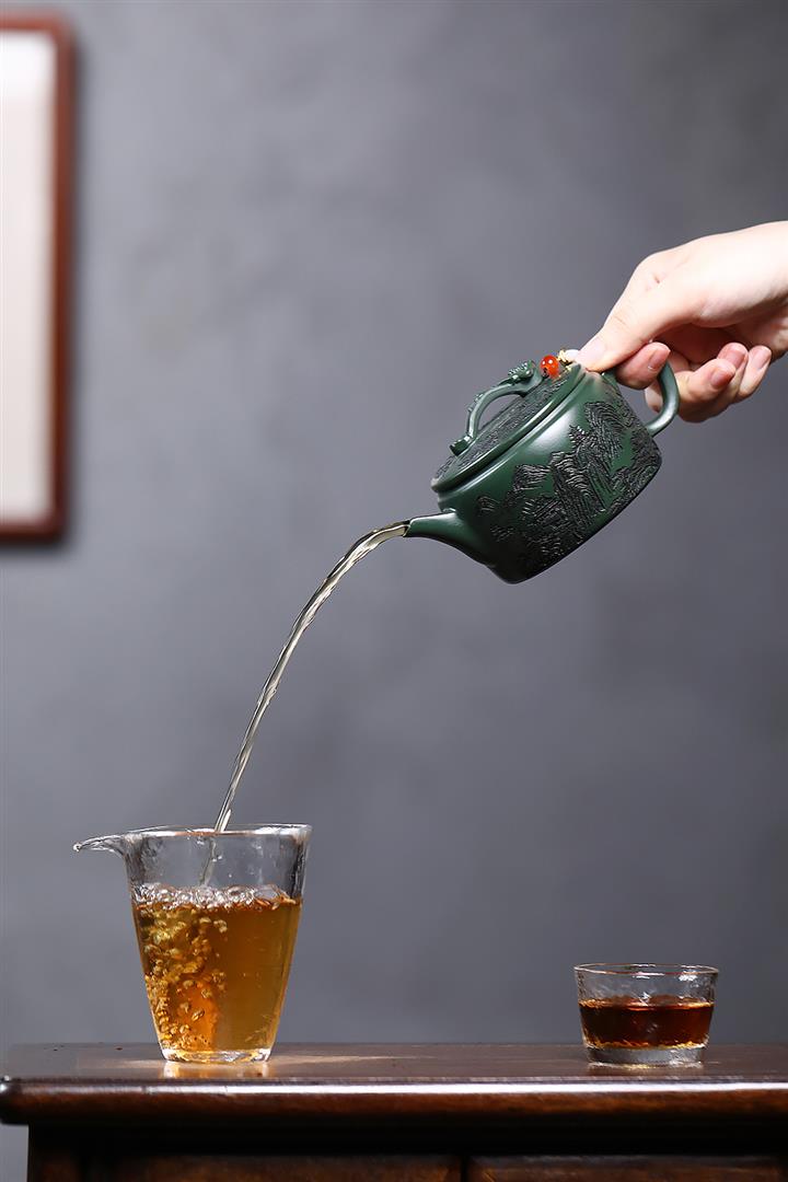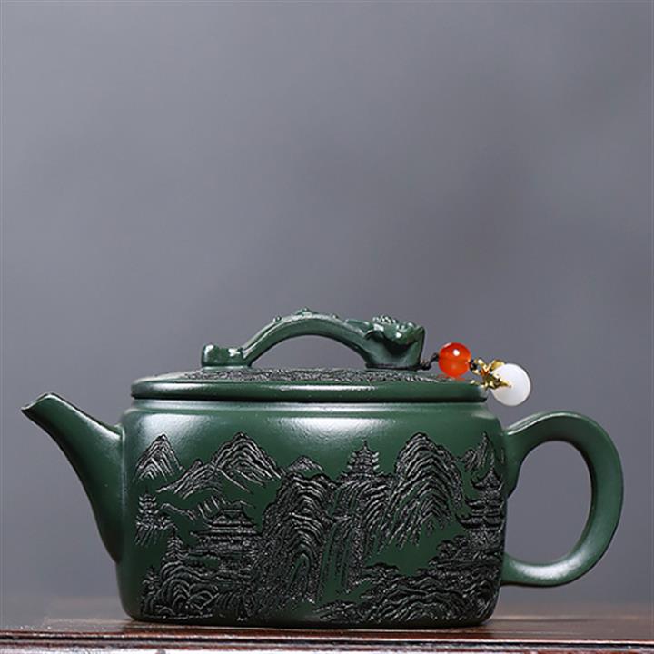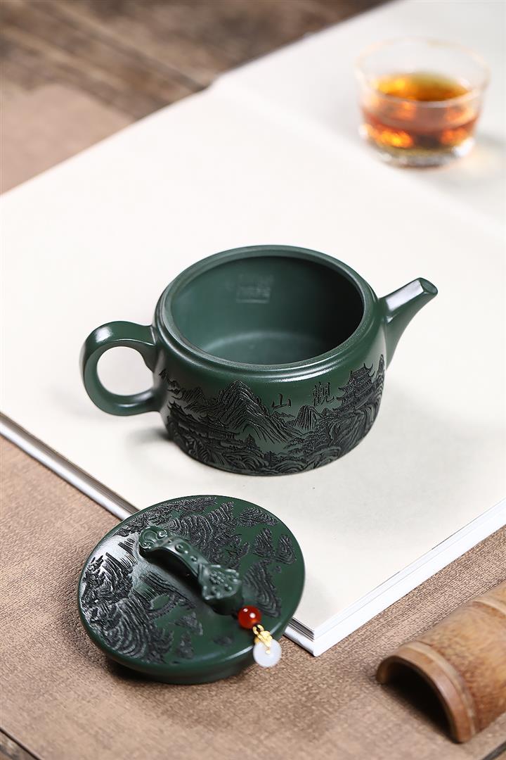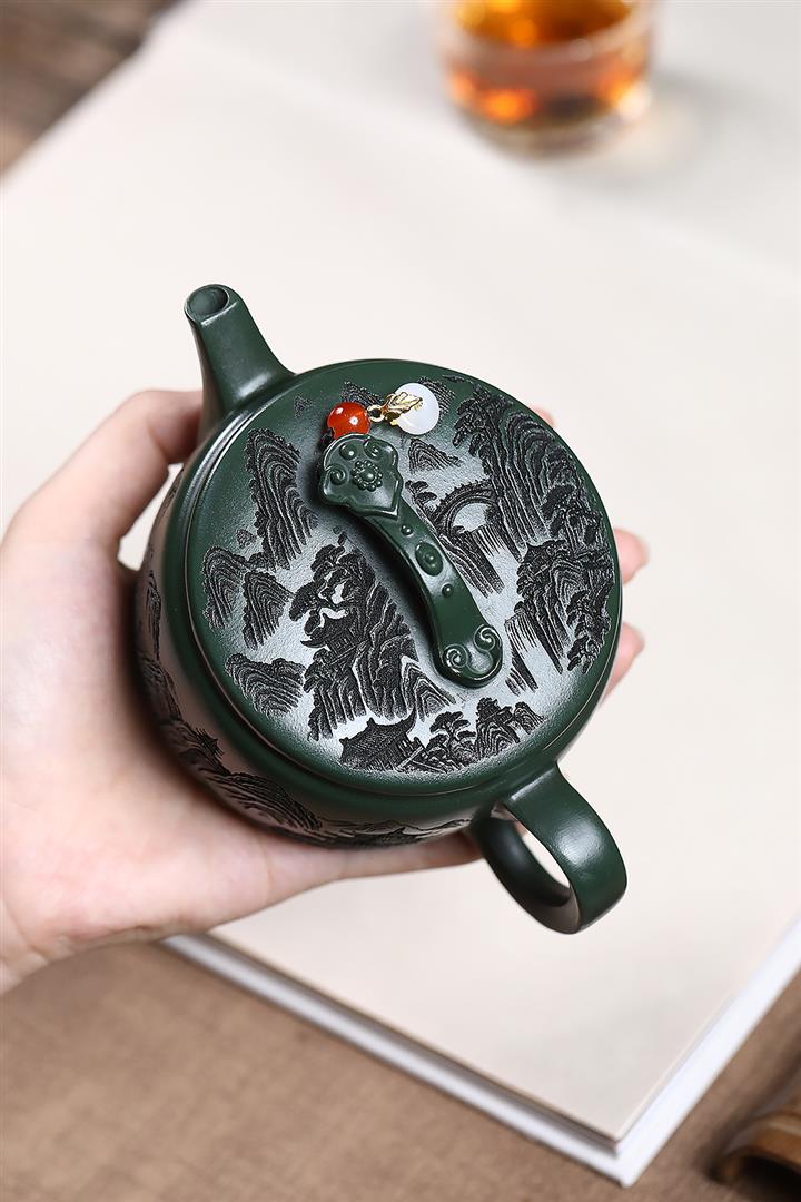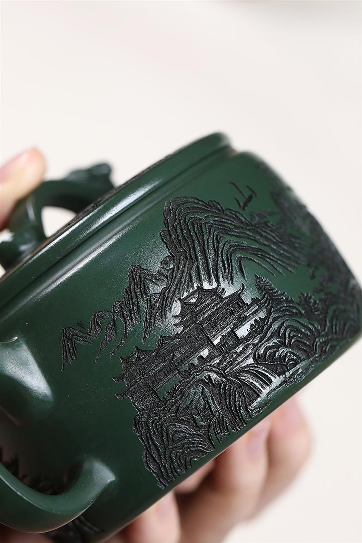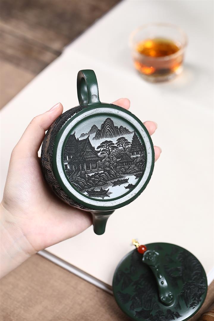 原礦墨綠泥如意山水漢瓦茶壺POT7577