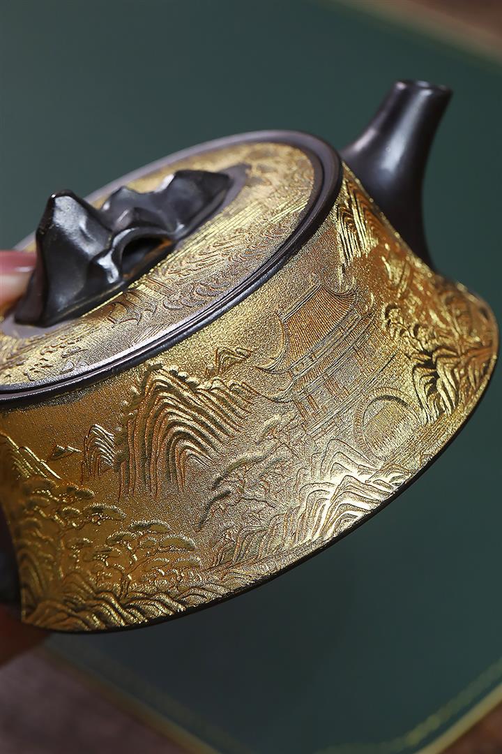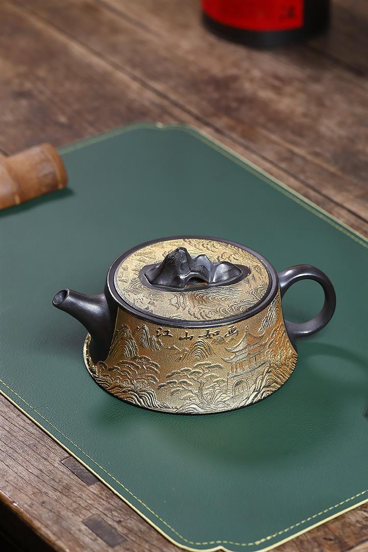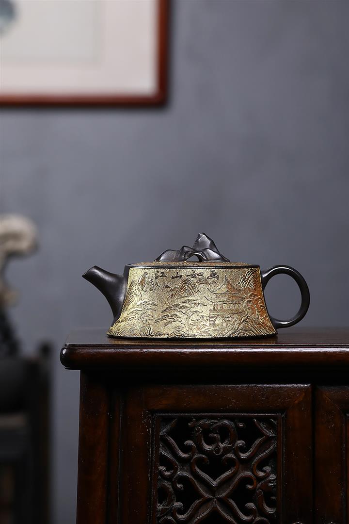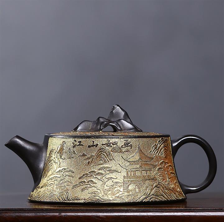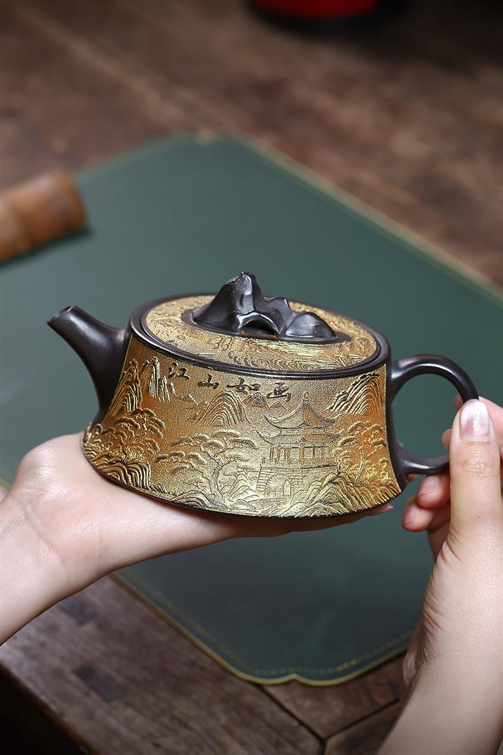 原礦玄鐵石黃江山如畫茶壺POT7578