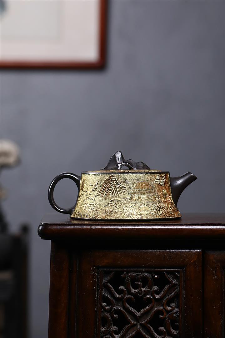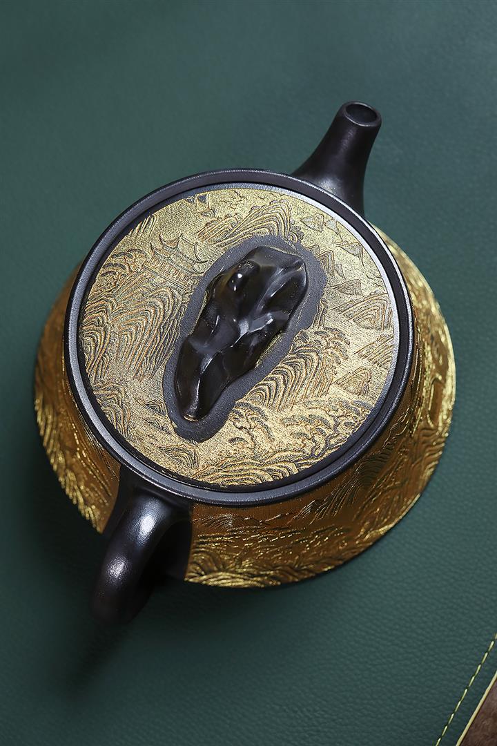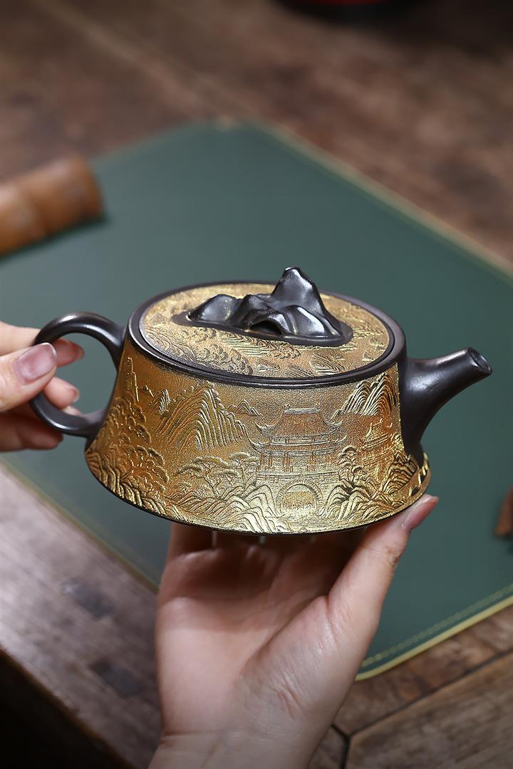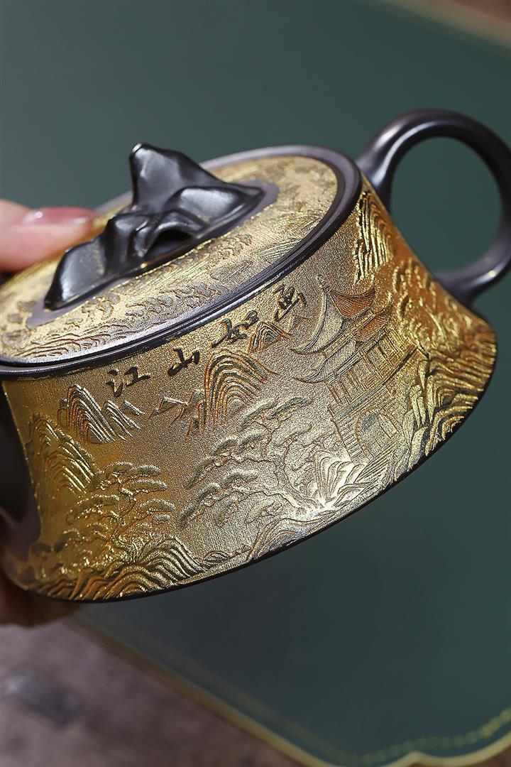 原礦玄鐵石黃江山如畫茶壺POT7578