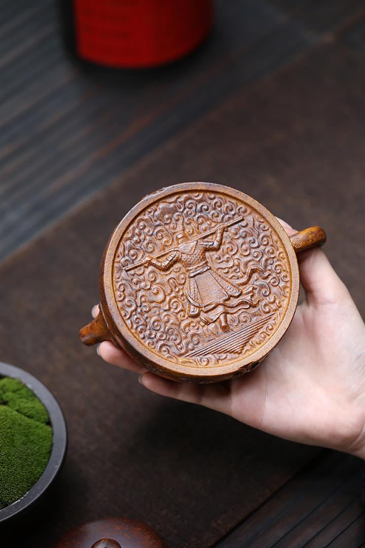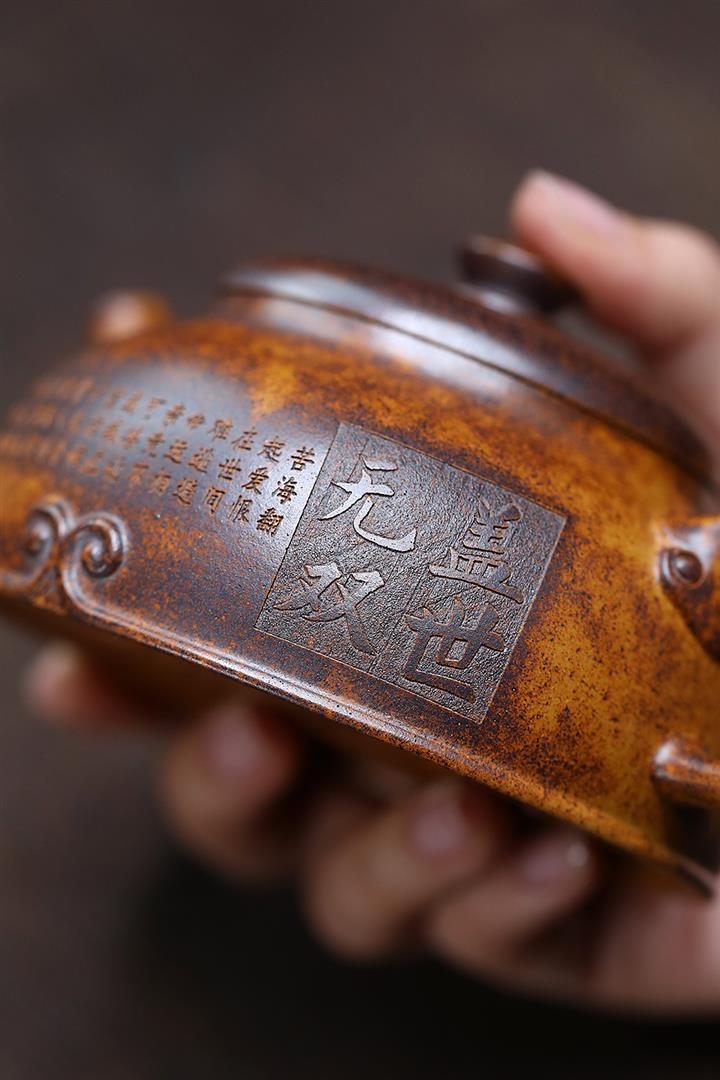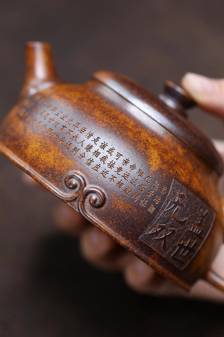 原礦玄鐵石黃刻繪覓香苑曲壺POT7592
