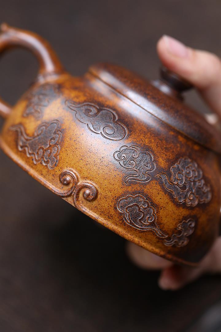 紫砂使用越久,壺身色澤越發光亮照人,氣韻溫雅。紫砂壺長久使用器身會因撫摸擦拭,變得越發溫潤光澤!