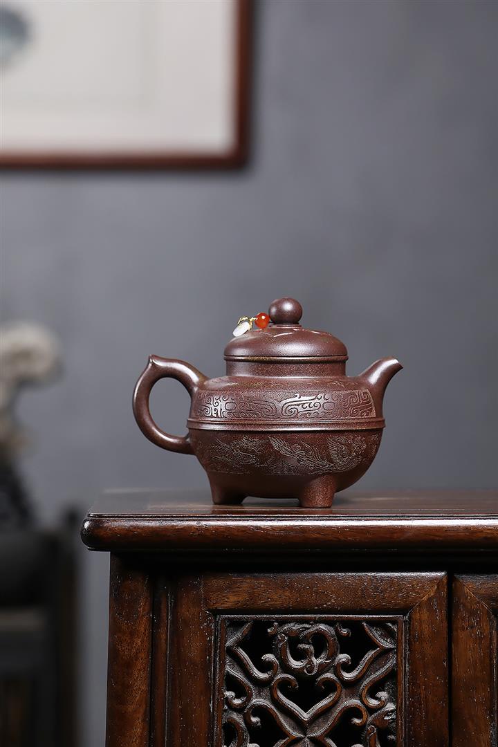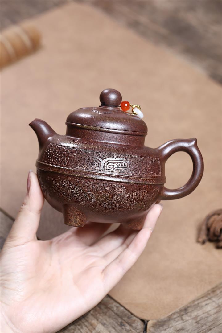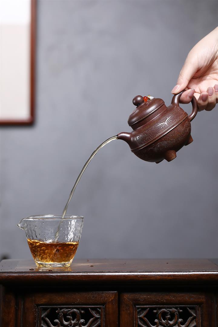 紫砂使用越久,壺身色澤越發光亮照人,氣韻溫雅。紫砂壺長久使用器身會因撫摸擦拭,變得越發溫潤光澤!