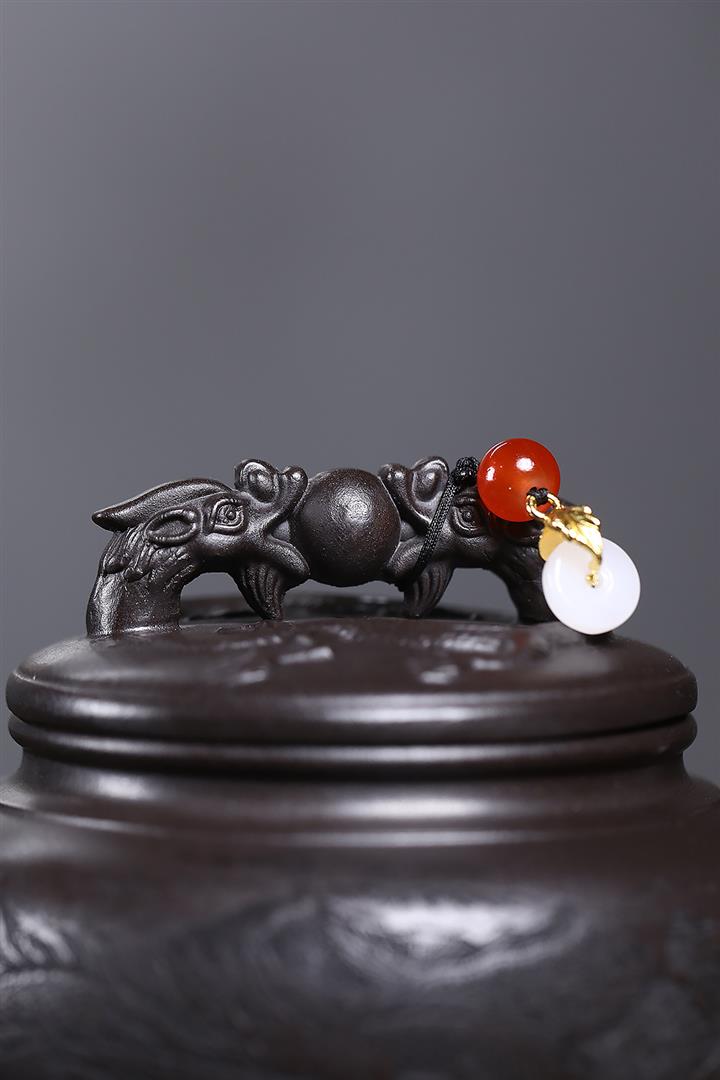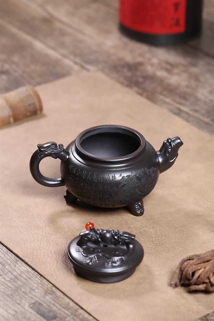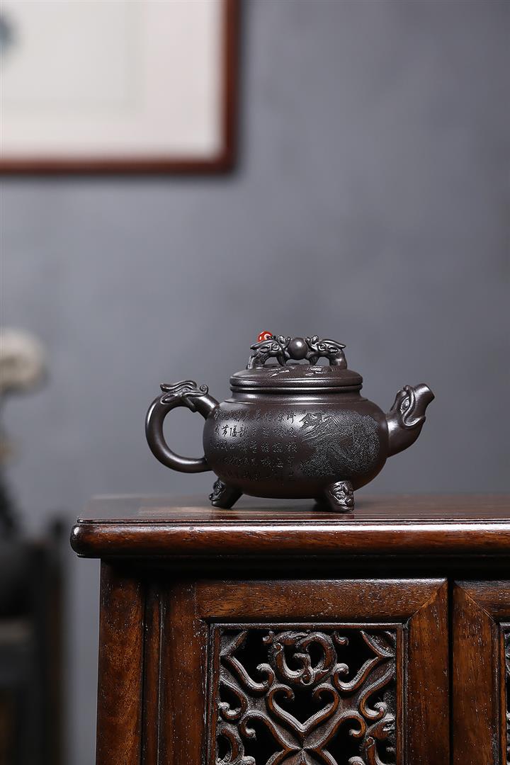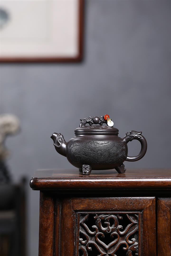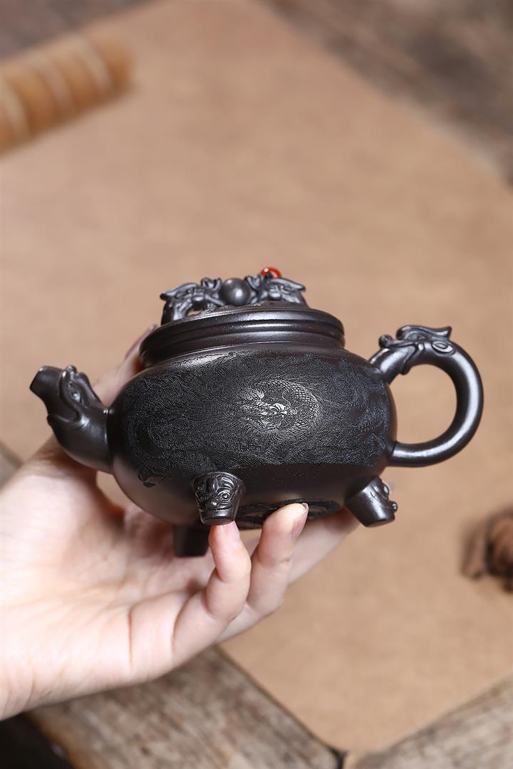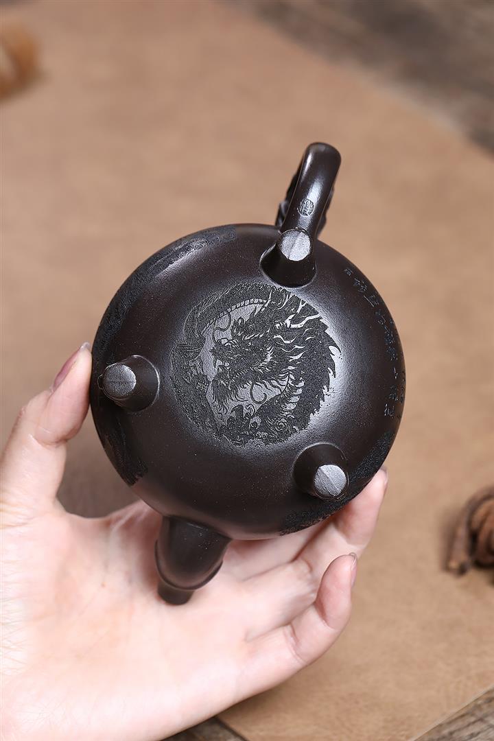 原礦玄鐵石黃雙龍戲珠茶壺POT7591