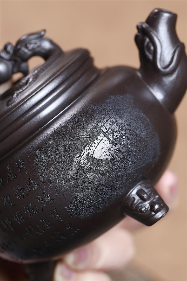 原礦玄鐵石黃刻繪覓香苑曲壺POT7592