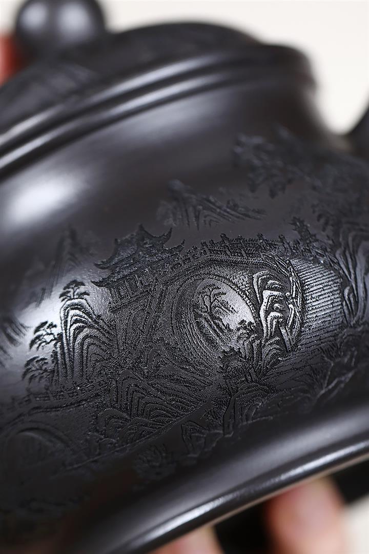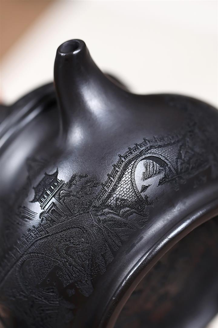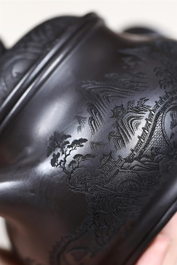 【作品介紹】作品深蘊內涵,做工細致典雅,型用完備,器形端莊穩重,比例協調,結構嚴謹,泥色潤澤。