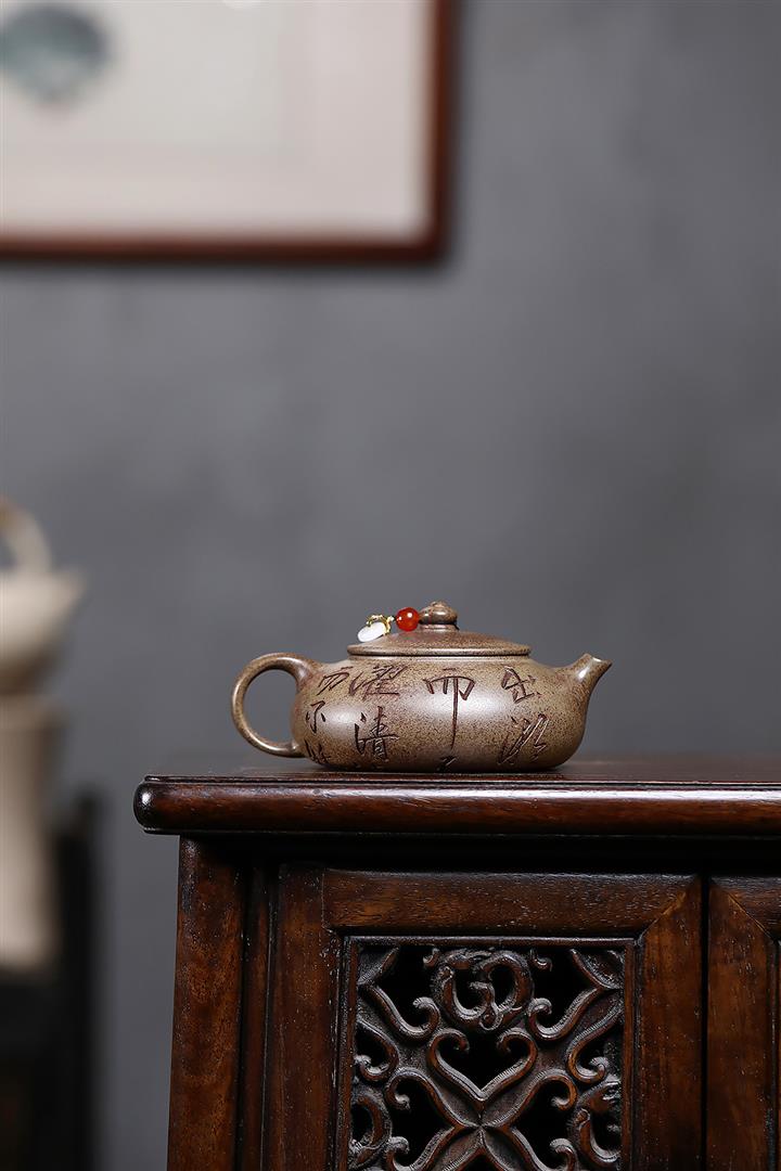 紫砂使用越久,壺身色澤越發光亮照人,氣韻溫雅。紫砂壺長久使用器身會因撫摸擦拭,變得越發溫潤光澤!