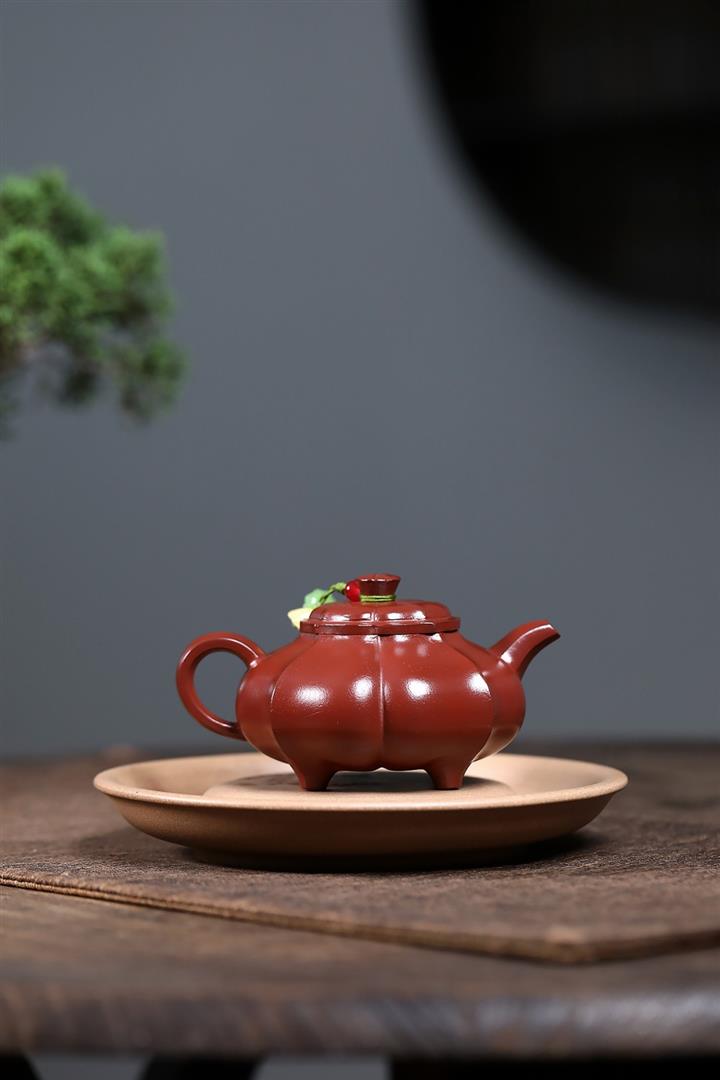 原礦大紅袍五福圖漢瓦茶壺POT7610