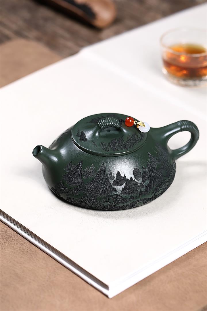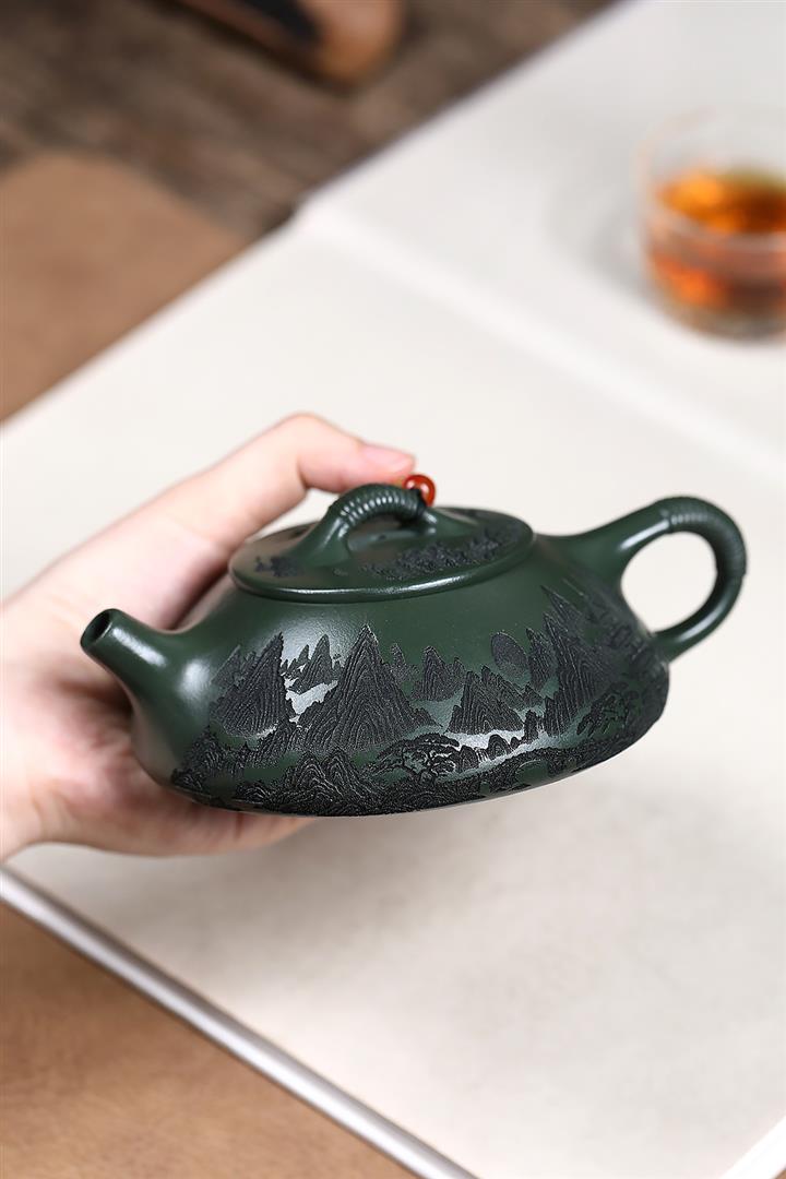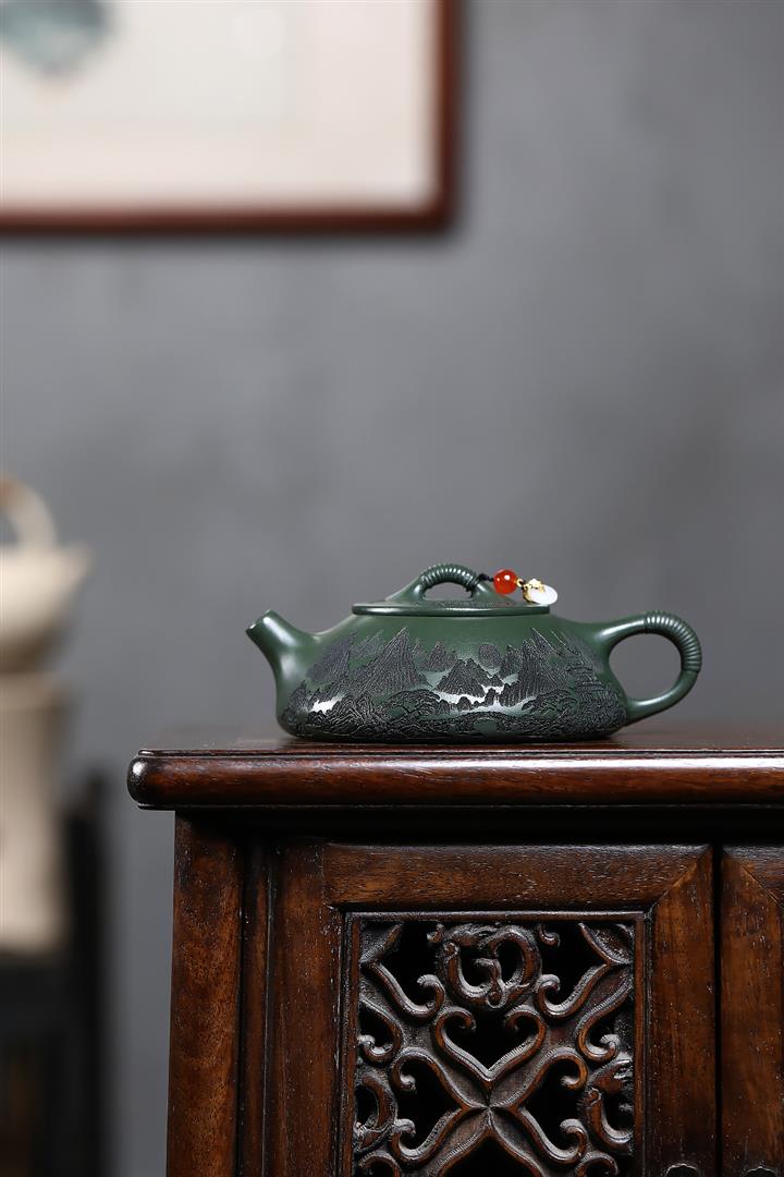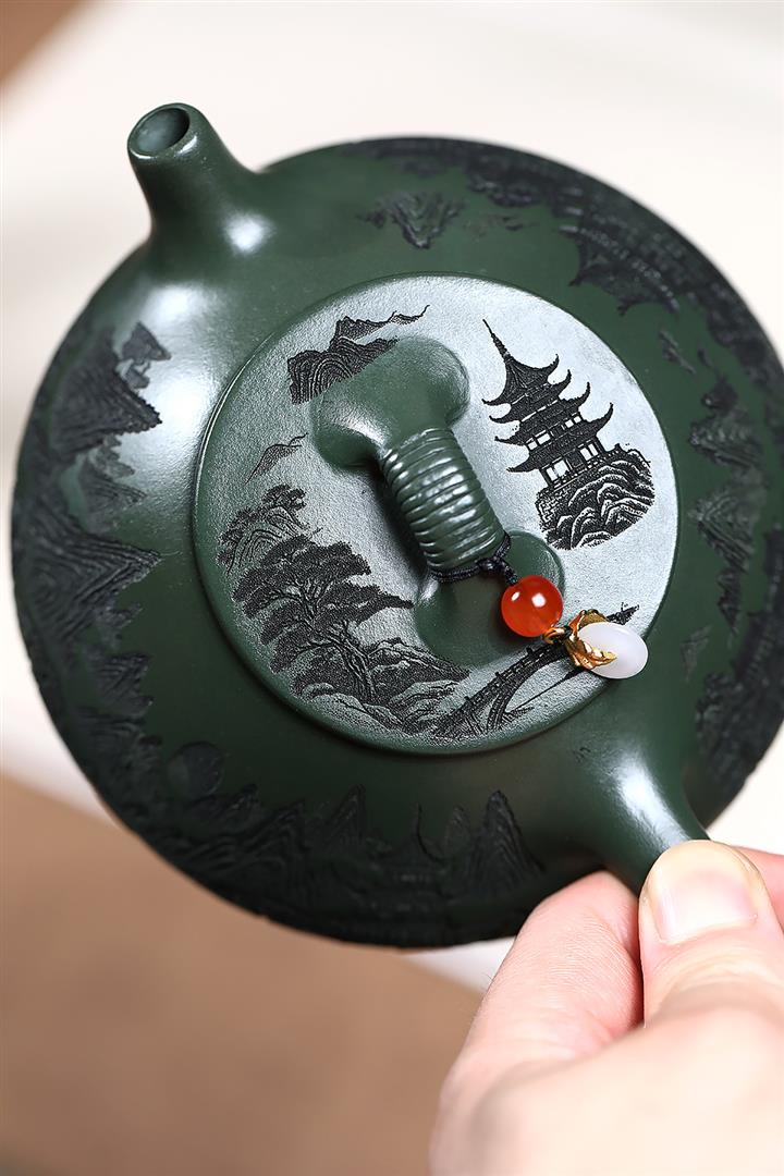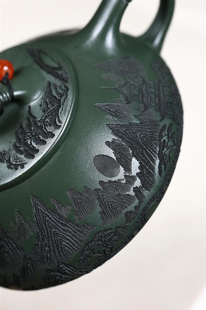 原礦綠泥刻繪山景線瓢茶壺POT7624