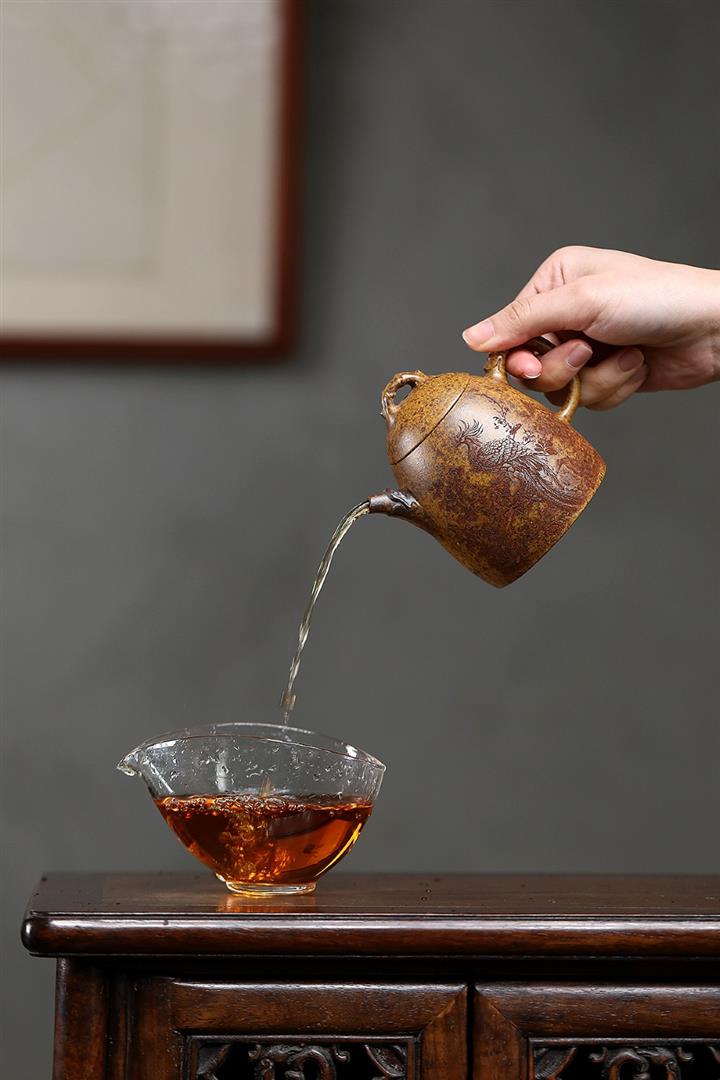 紫砂使用越久,壺身色澤越發光亮照人,氣韻溫雅。紫砂壺長久使用器身會因撫摸擦拭,變得越發溫潤光澤!