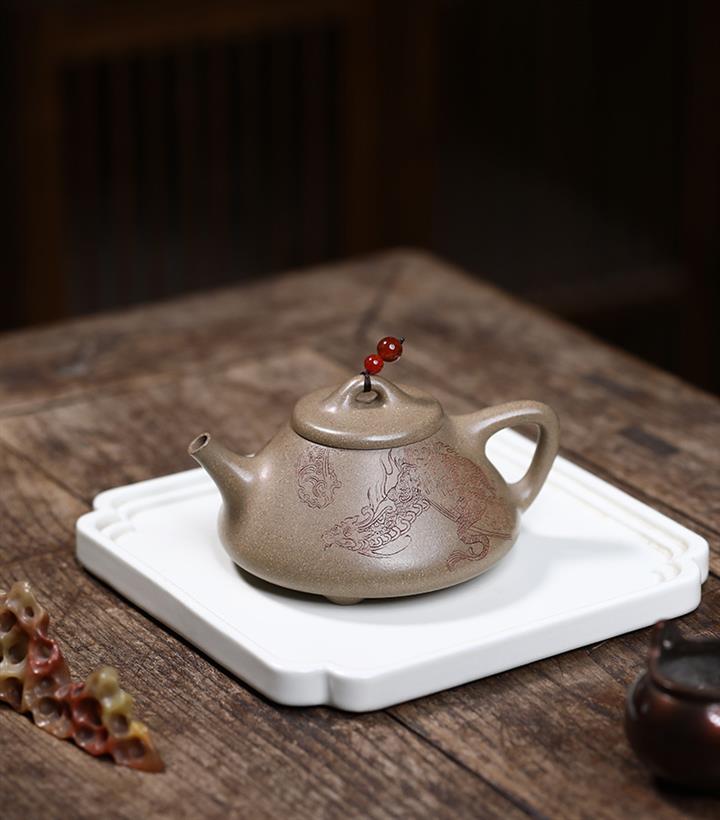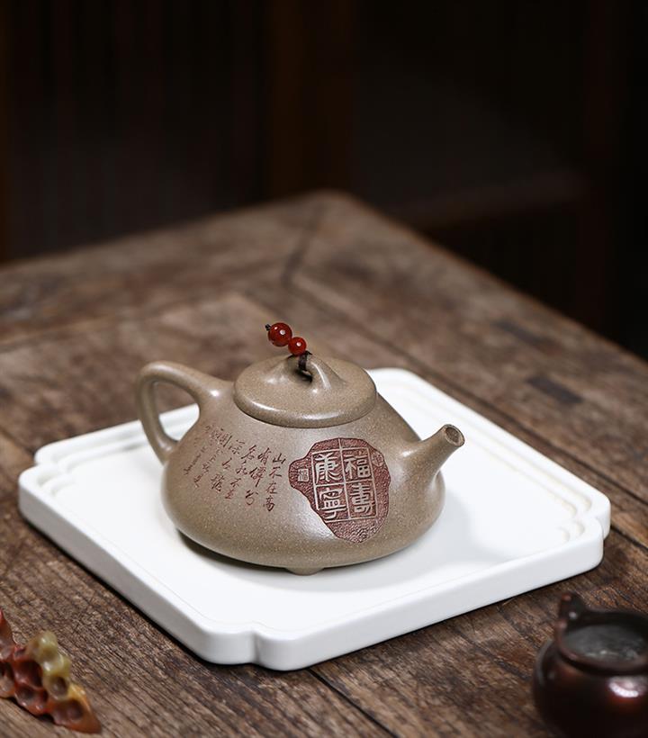 原礦龍骨金砂憶江南方圓茶壺POT7652