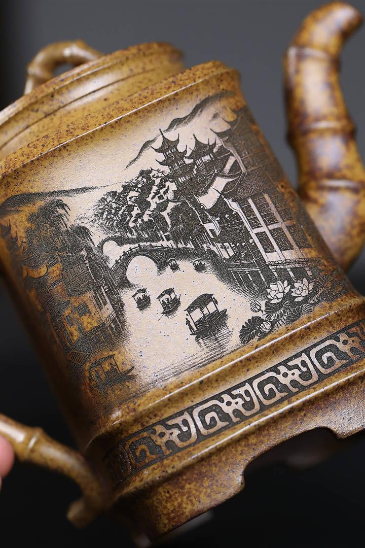 原礦龍血砂山水秦權秒幹茶壺POT7662