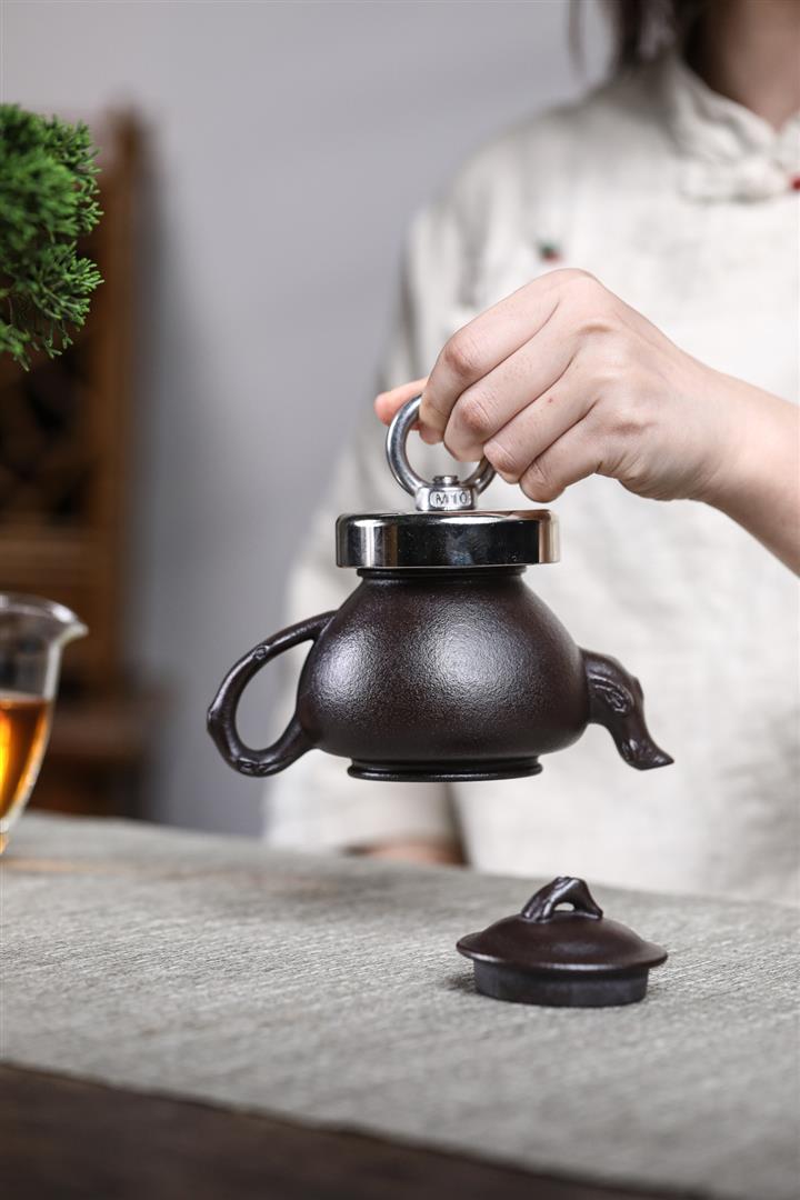原礦黑料石黃河豚西施磁吸茶壺POT7666