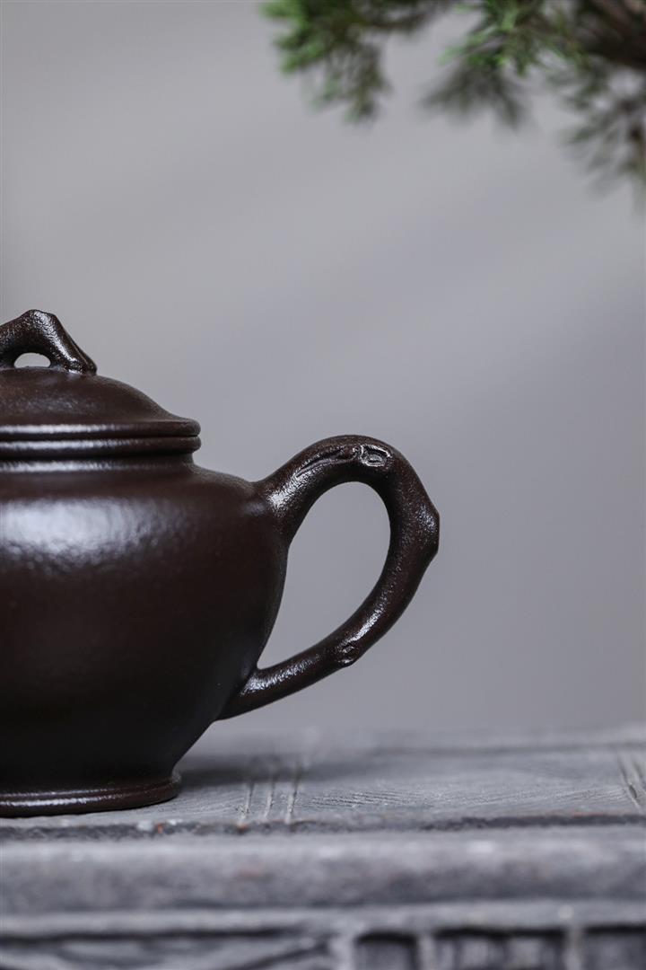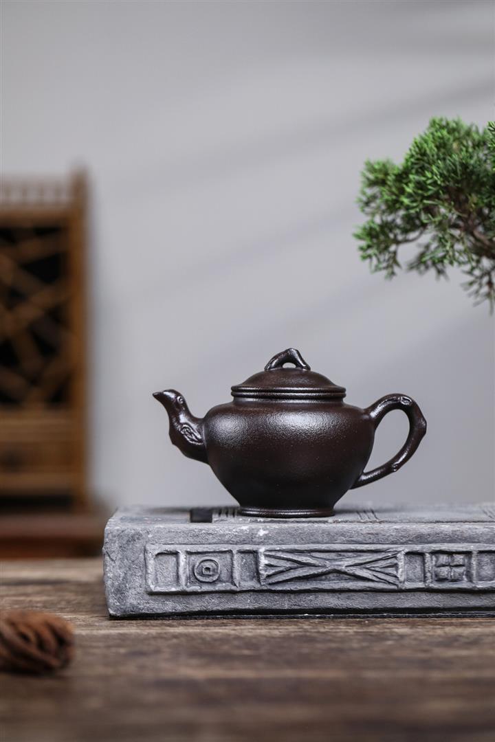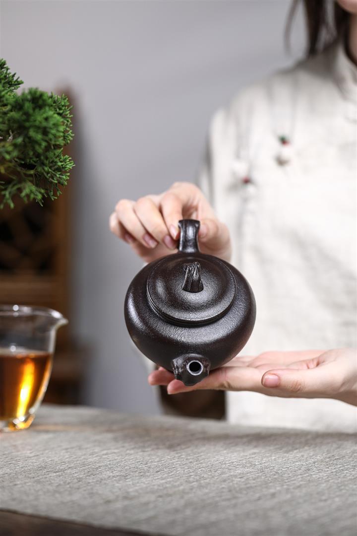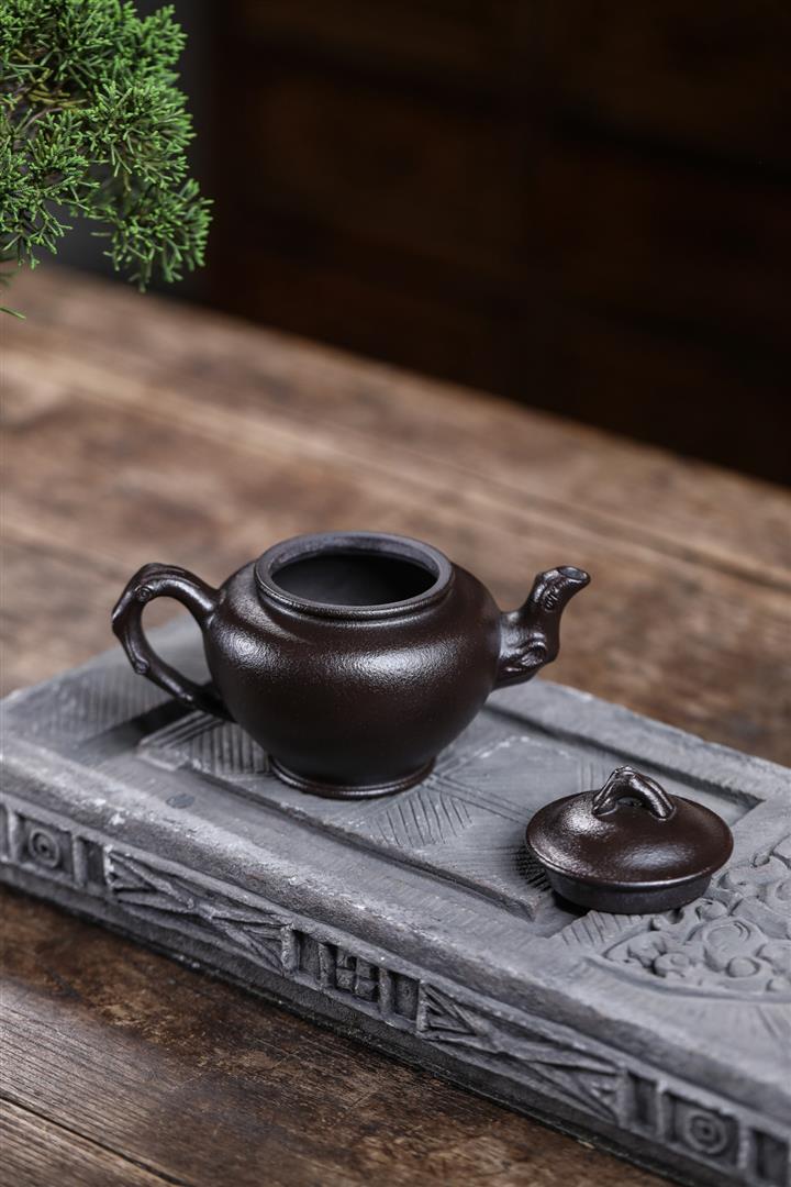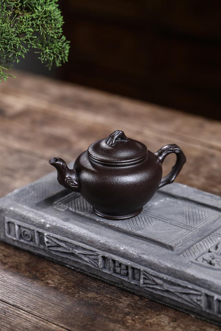 原礦黑料石黃磁吸報春茶壺POT7664