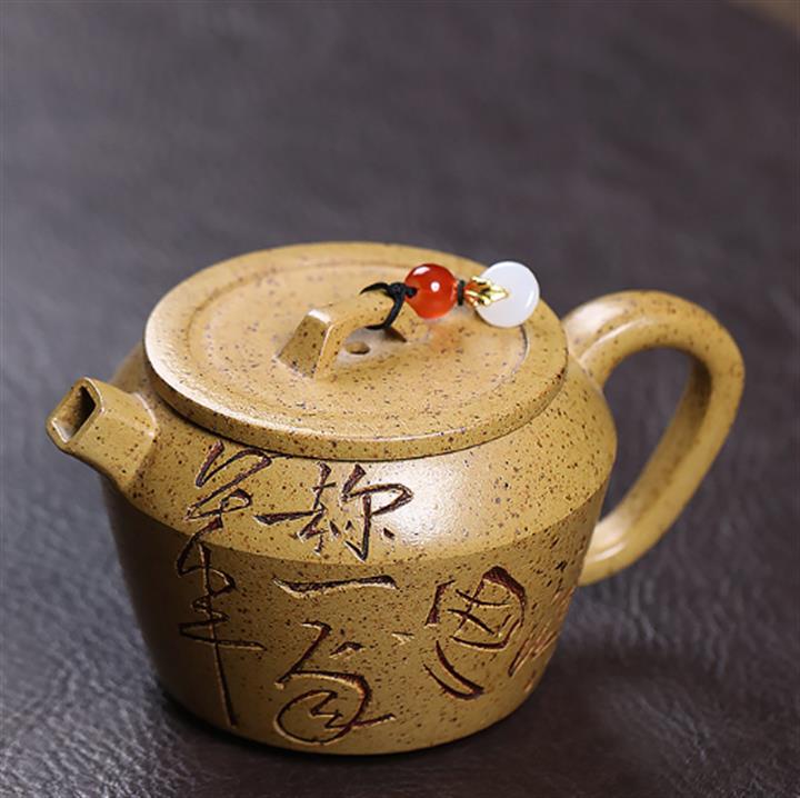 原礦石黃刻繪山水曲壺茶壺POT7683