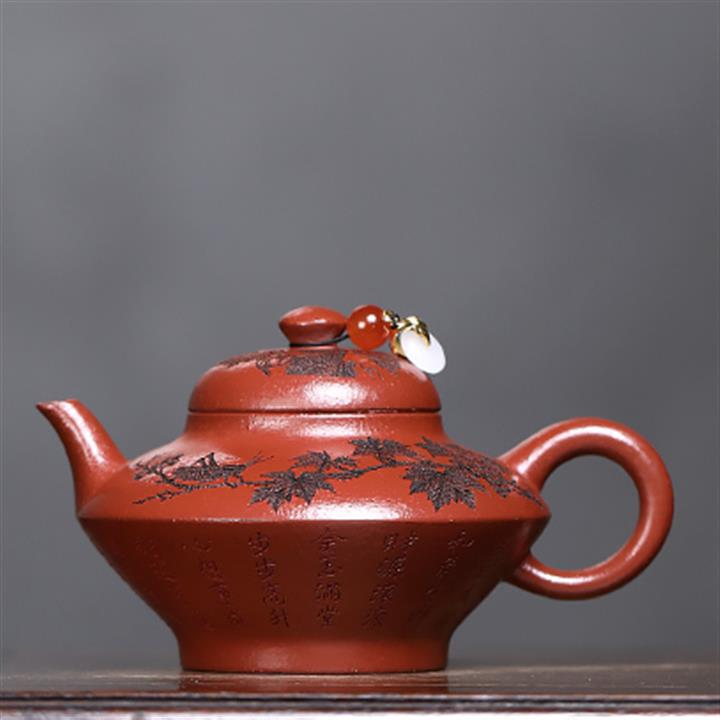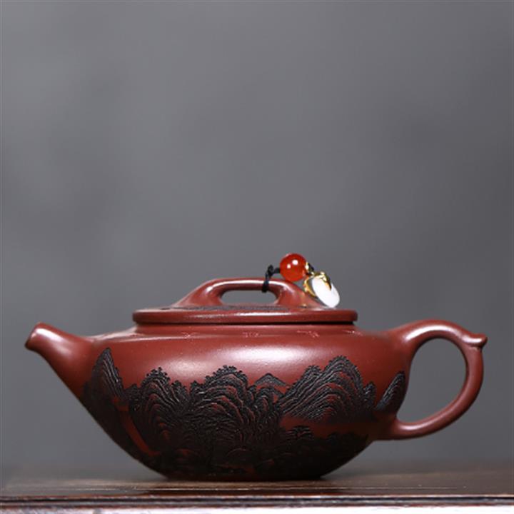原礦秒幹龍血砂山水扁晨茶壺POT7686