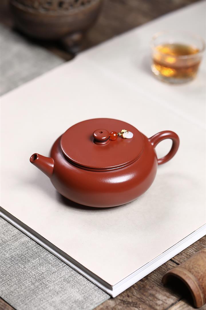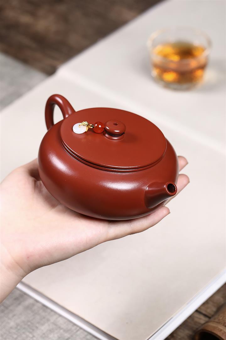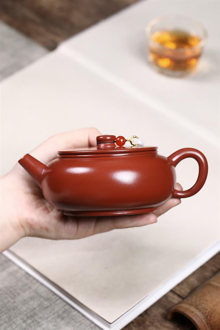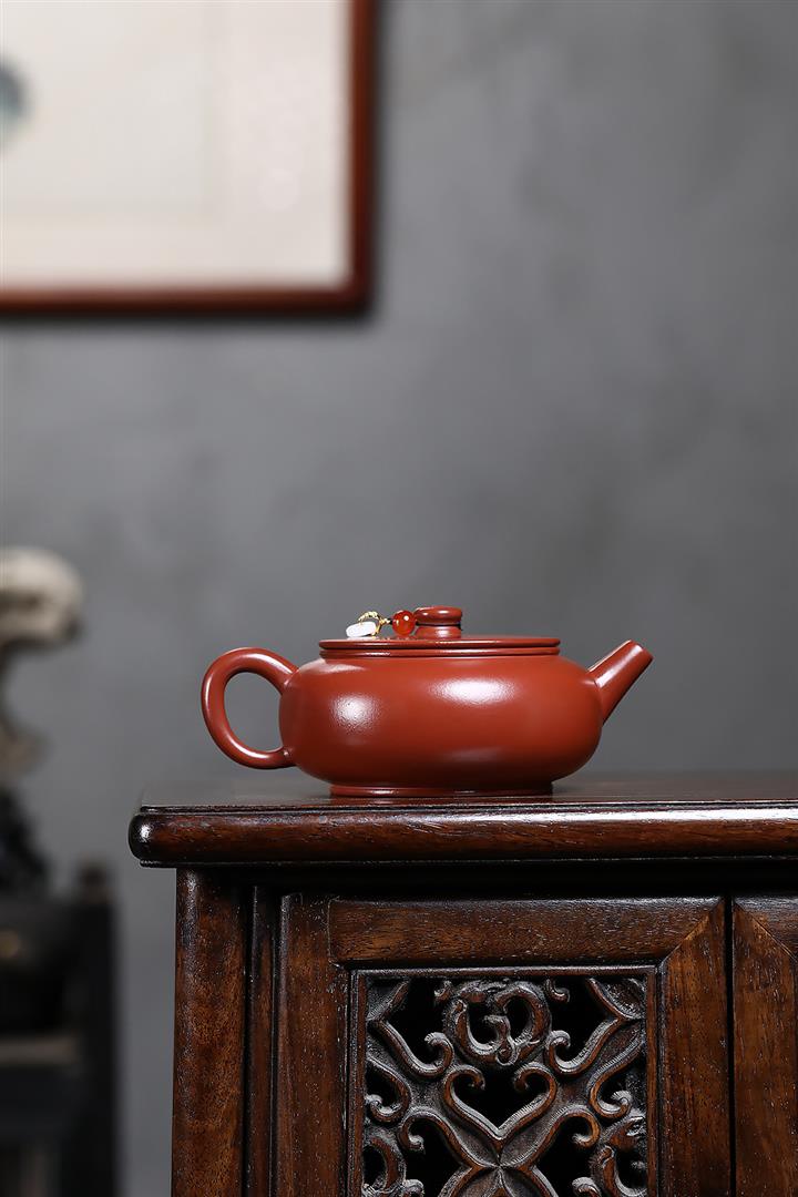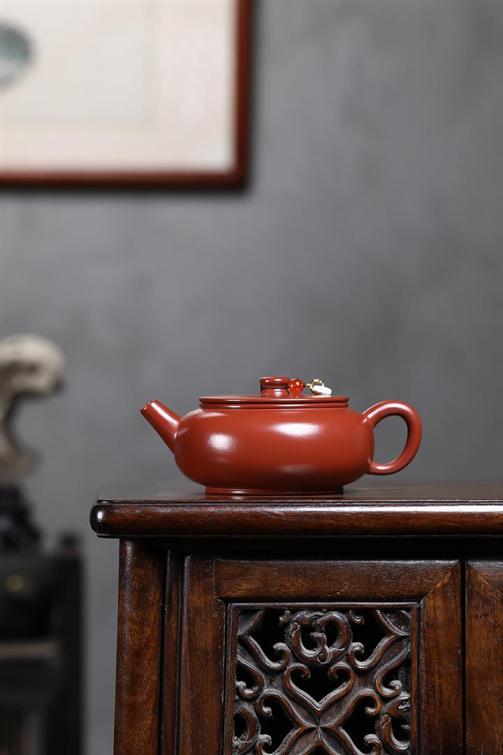原礦大紅袍朱泥平蓋扁鼓茶壺POT7680
