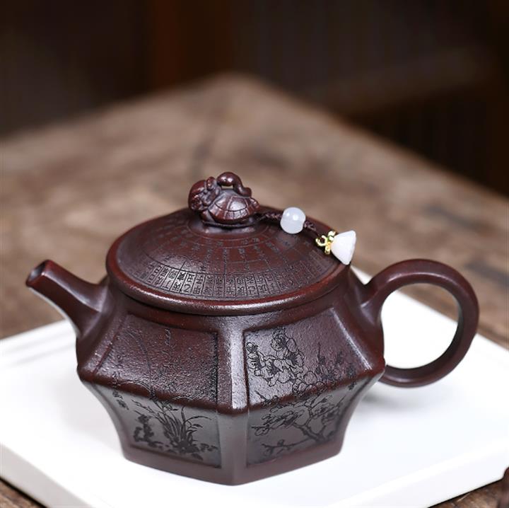 原礦古烏泥六方四君子茶壺POT7690