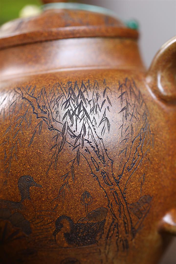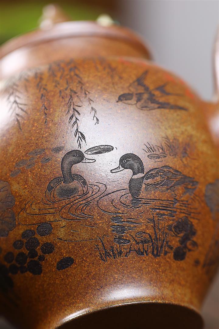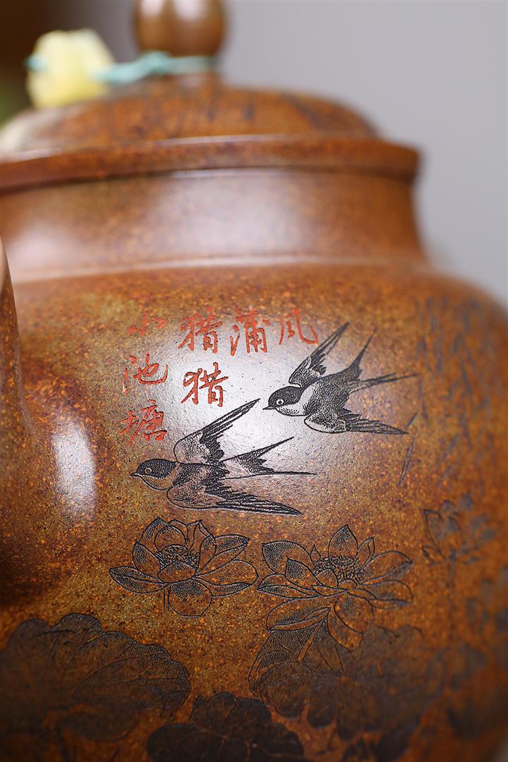 原礦沈香泥柴燒花鳥方尊茶壺POT7693