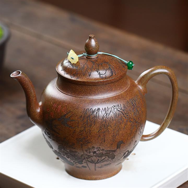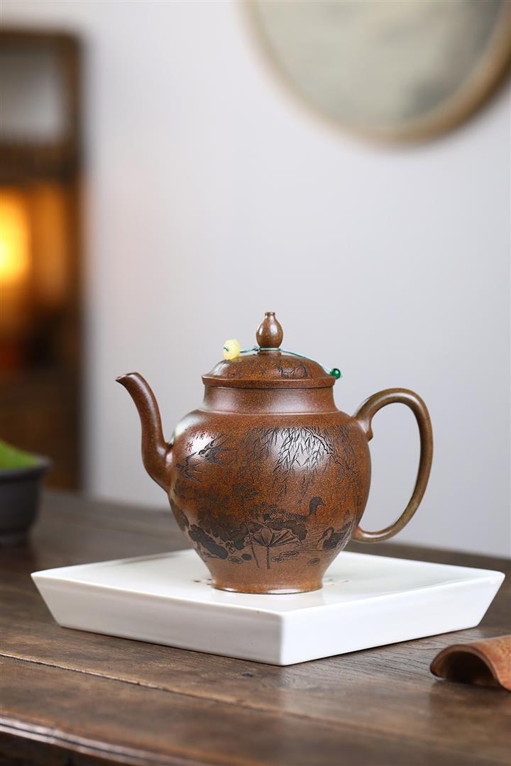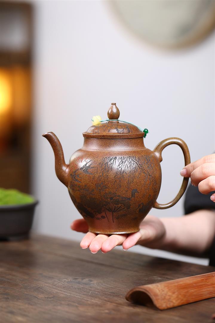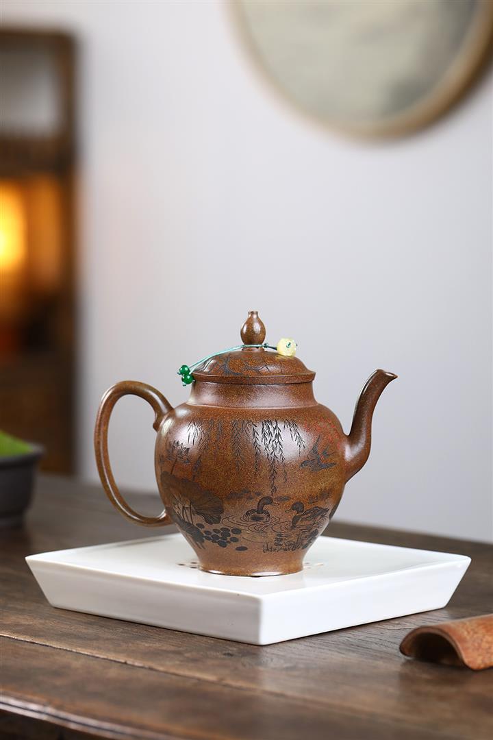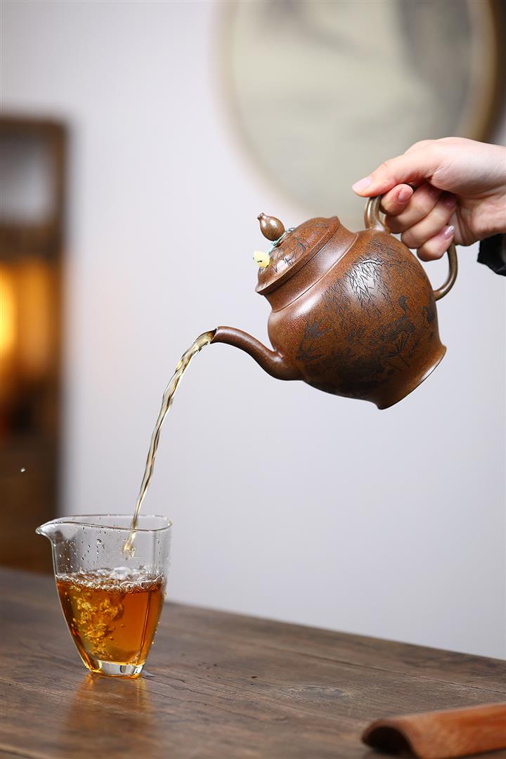 紫砂使用越久,壺身色澤越發光亮照人,氣韻溫雅。紫砂壺長久使用器身會因撫摸擦拭,變得越發溫潤光澤!