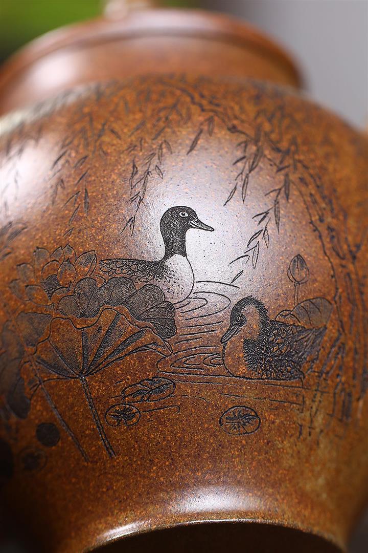 【作品介紹】作品深蘊內涵,做工細致典雅,型用完備,器形端莊穩重,比例協調,結構嚴謹,泥色潤澤。