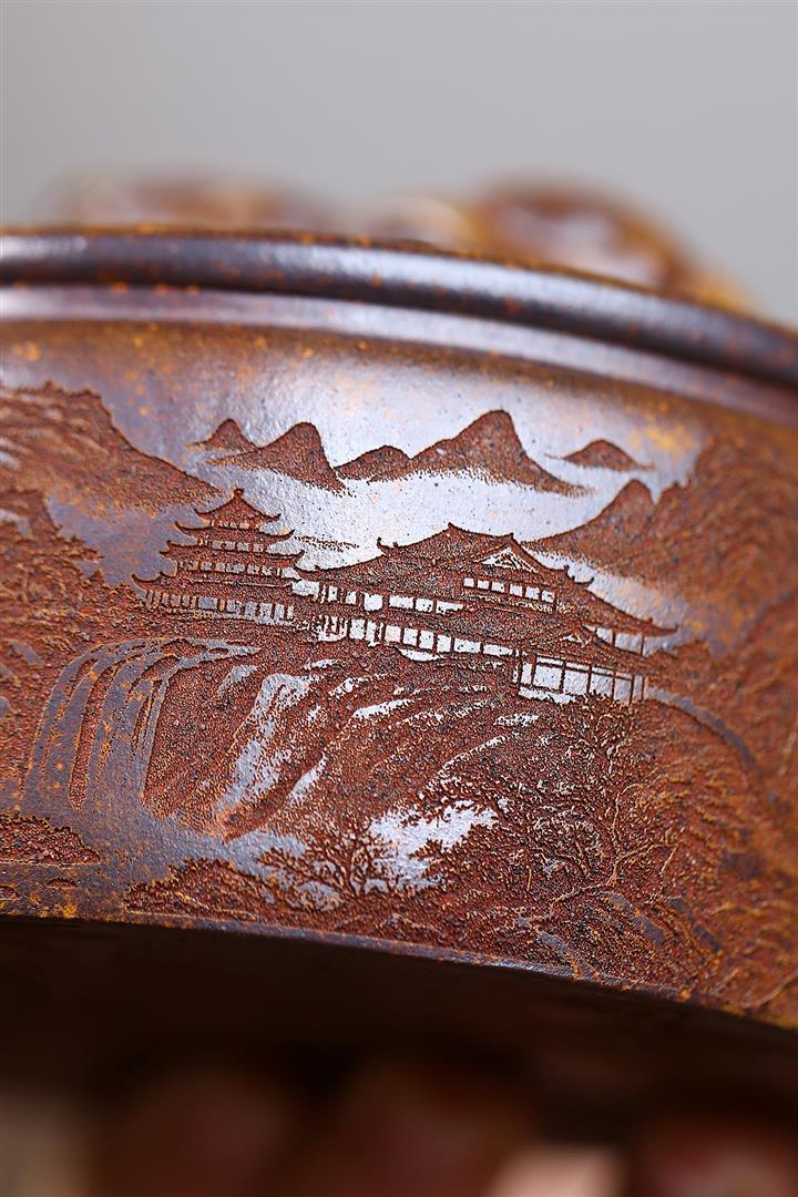 【作品介紹】作品深蘊內涵,做工細致典雅,型用完備,器形端莊穩重,比例協調,結構嚴謹,泥色潤澤。