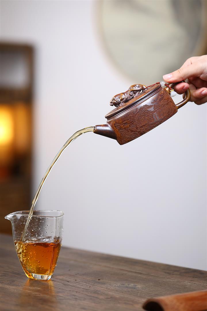 紫砂使用越久,壺身色澤越發光亮照人,氣韻溫雅。紫砂壺長久使用器身會因撫摸擦拭,變得越發溫潤光澤!