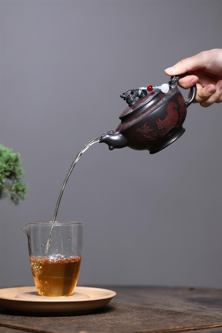紫砂使用越久,壺身色澤越發光亮照人,氣韻溫雅。紫砂壺長久使用器身會因撫摸擦拭,變得越發溫潤光澤!