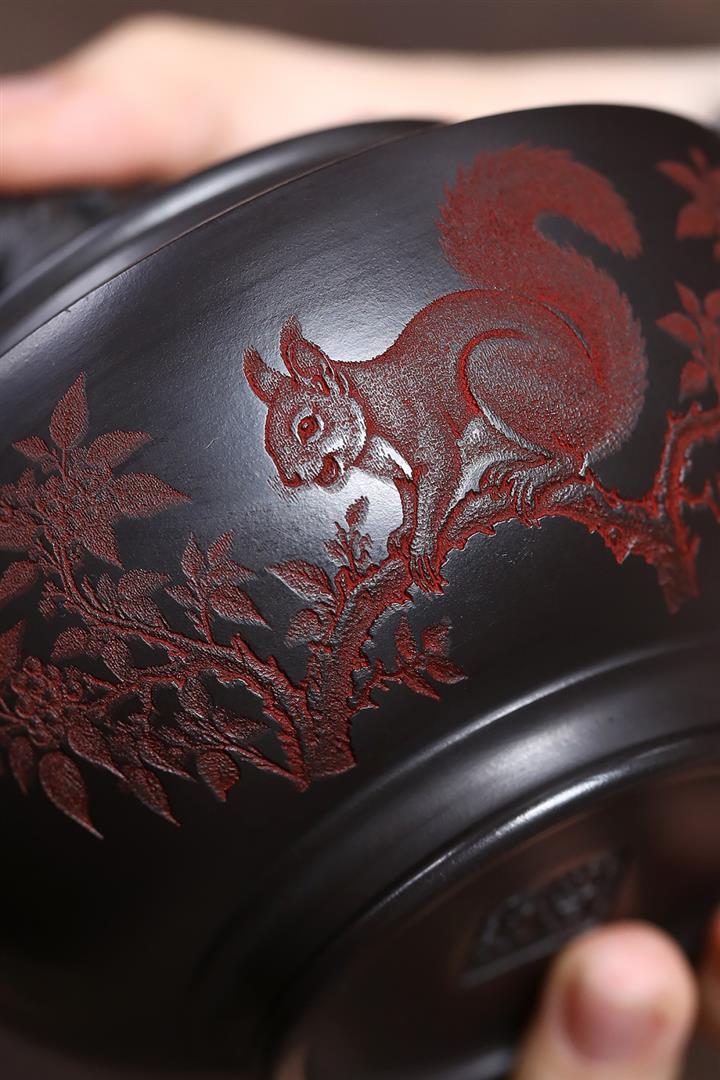 【作品介紹】作品深蘊內涵,做工細致典雅,型用完備,器形端莊穩重,比例協調,結構嚴謹,泥色潤澤。