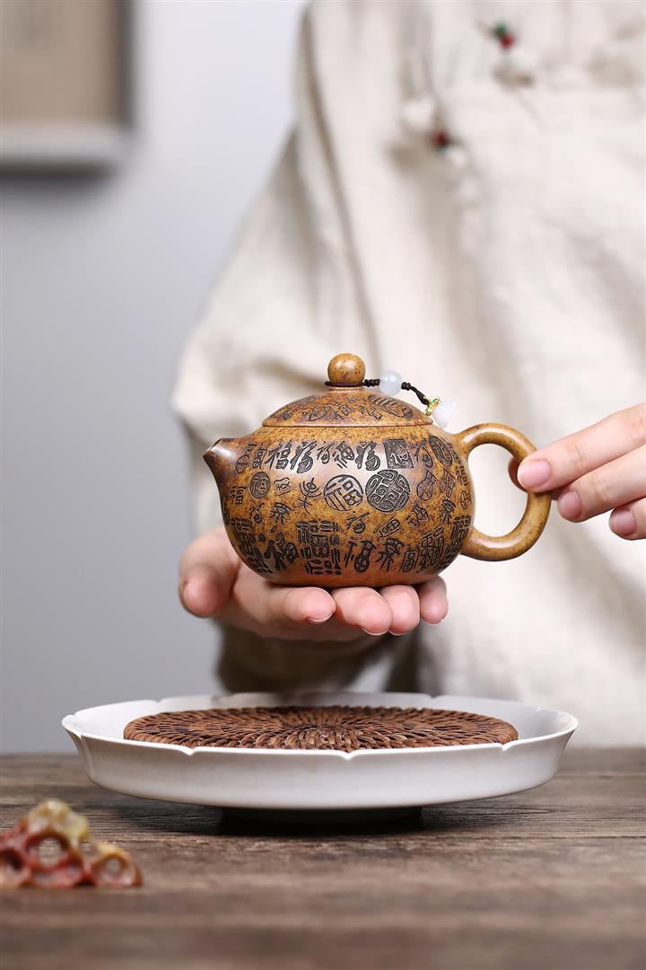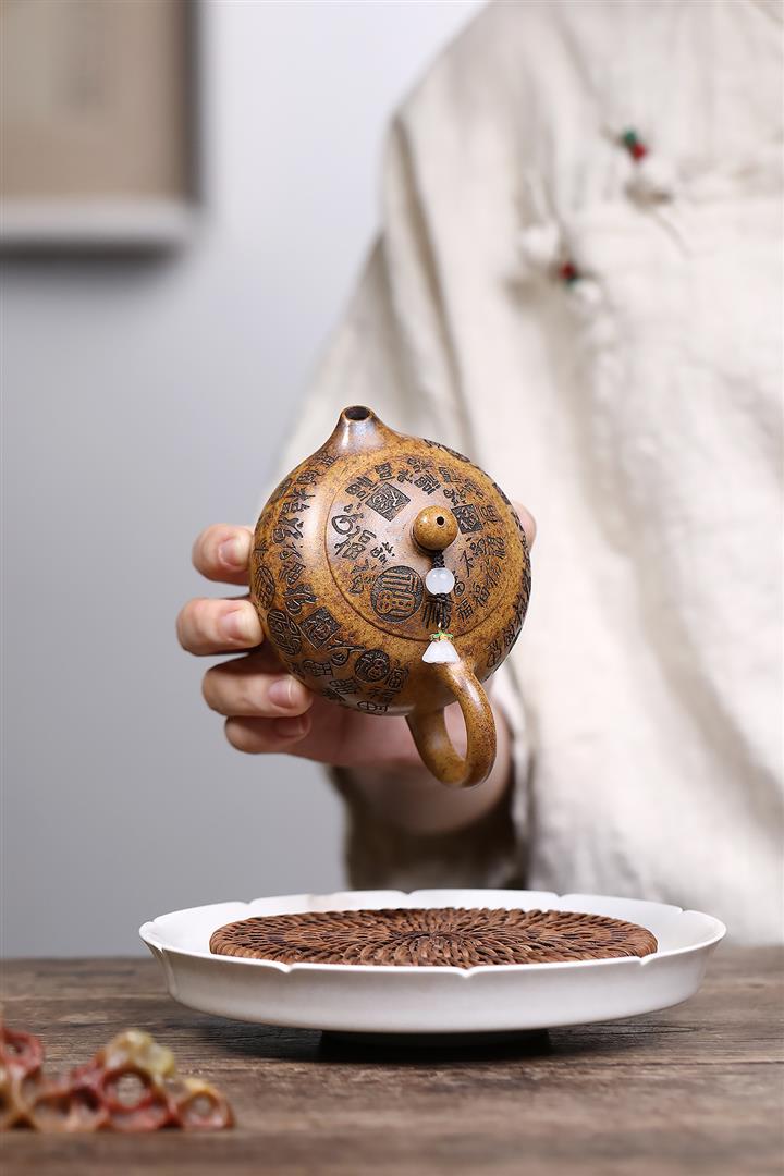 紫砂使用越久,壺身色澤越發光亮照人,氣韻溫雅。紫砂壺長久使用器身會因撫摸擦拭,變得越發溫潤光澤!