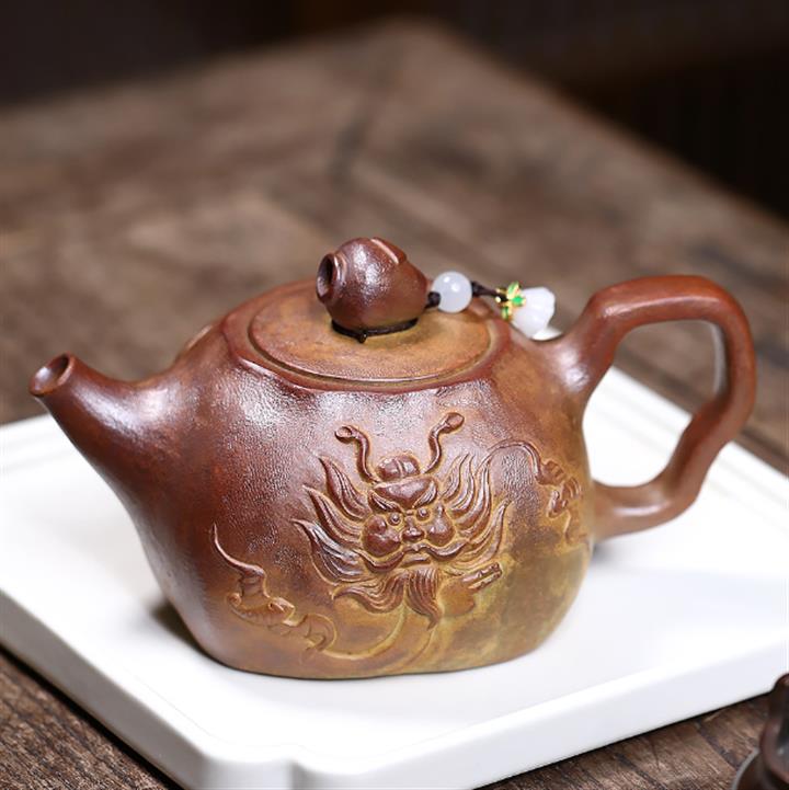 原礦老紫泥浮雕祥龍戲珠茶壺POT7734