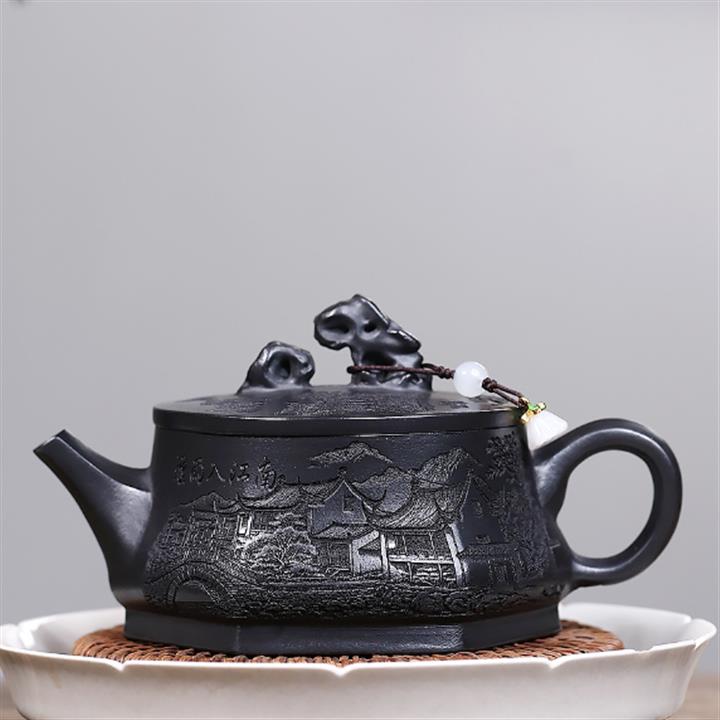 原礦墨綠泥雕龍點睛茶壺POT7736